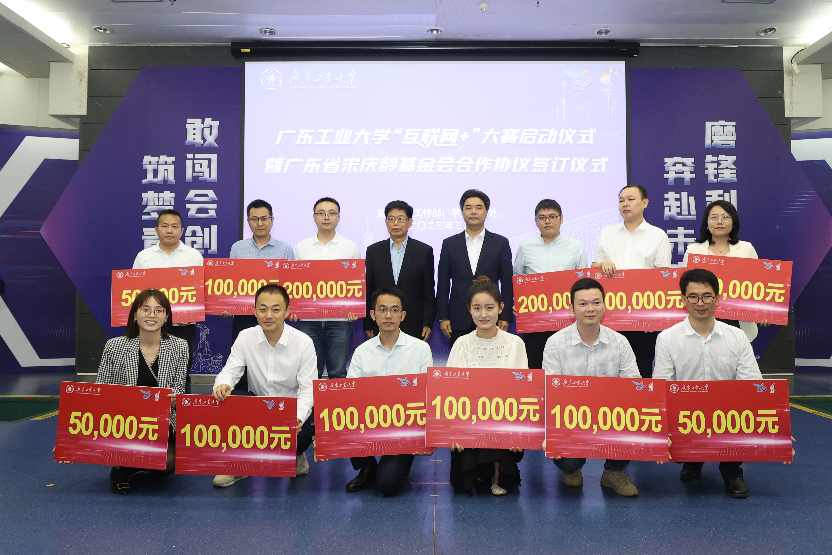 3月21日下午,学校第九届“互联网+”大学生创新创业大赛启动仪式暨广东省宋庆龄基金会合作框架协议签订仪式在大学城校区圆弧报告厅举办。广东省政协原副主席、省宋庆龄基金会主席唐豪,省宋庆龄基金会秘书长蔡延钊,学校党委书记胡钦太,学校党委常委、副校长陈卓武出席活动。