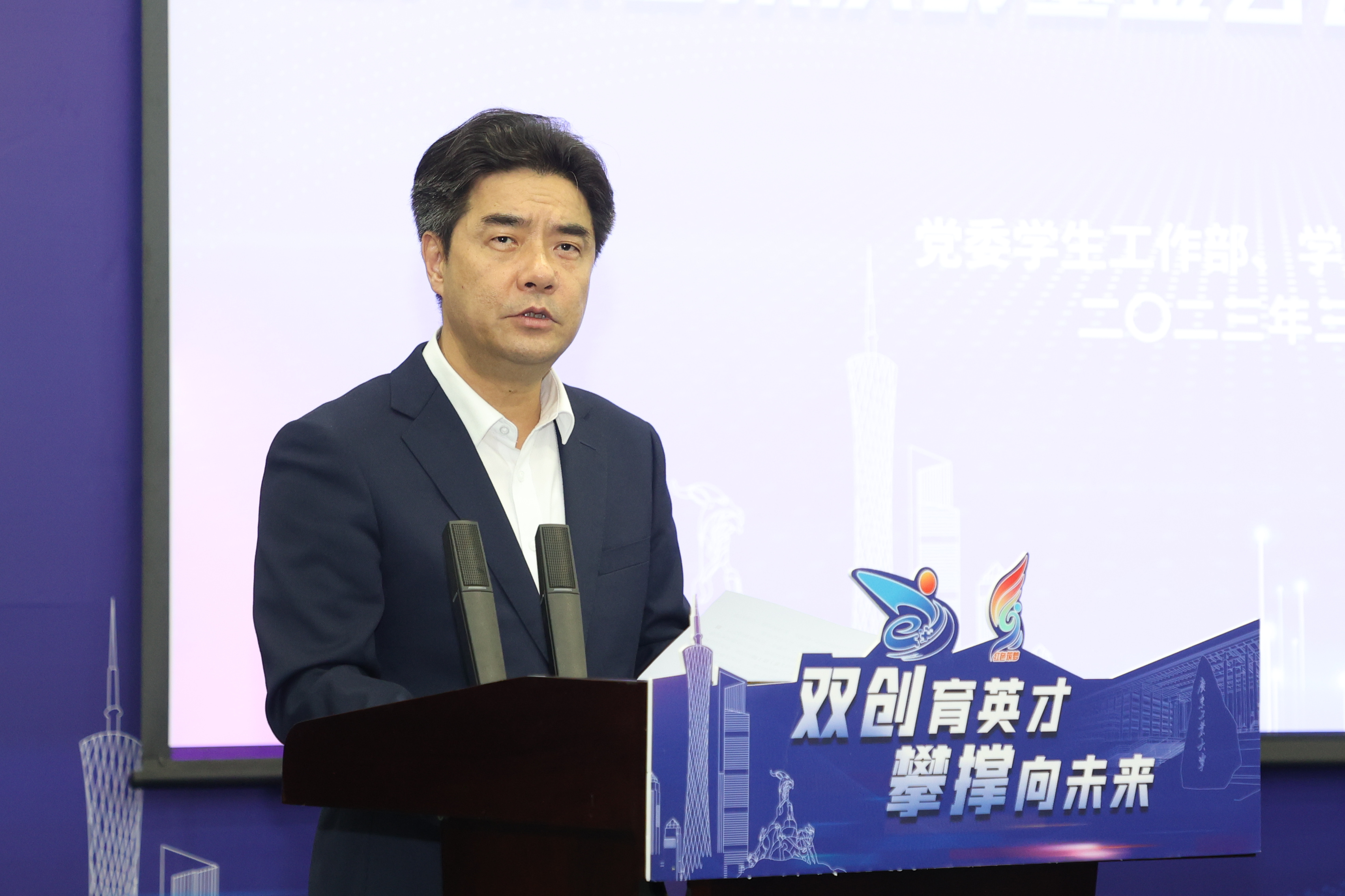 大会由学校党委学生工作部负责人主持,大赛组委会单位相关负责人,各学院党委书记、副书记、分管科研副院长、全体辅导员、重点培育项目负责人等200余人现场参会,揭阳校区师生线上参会。