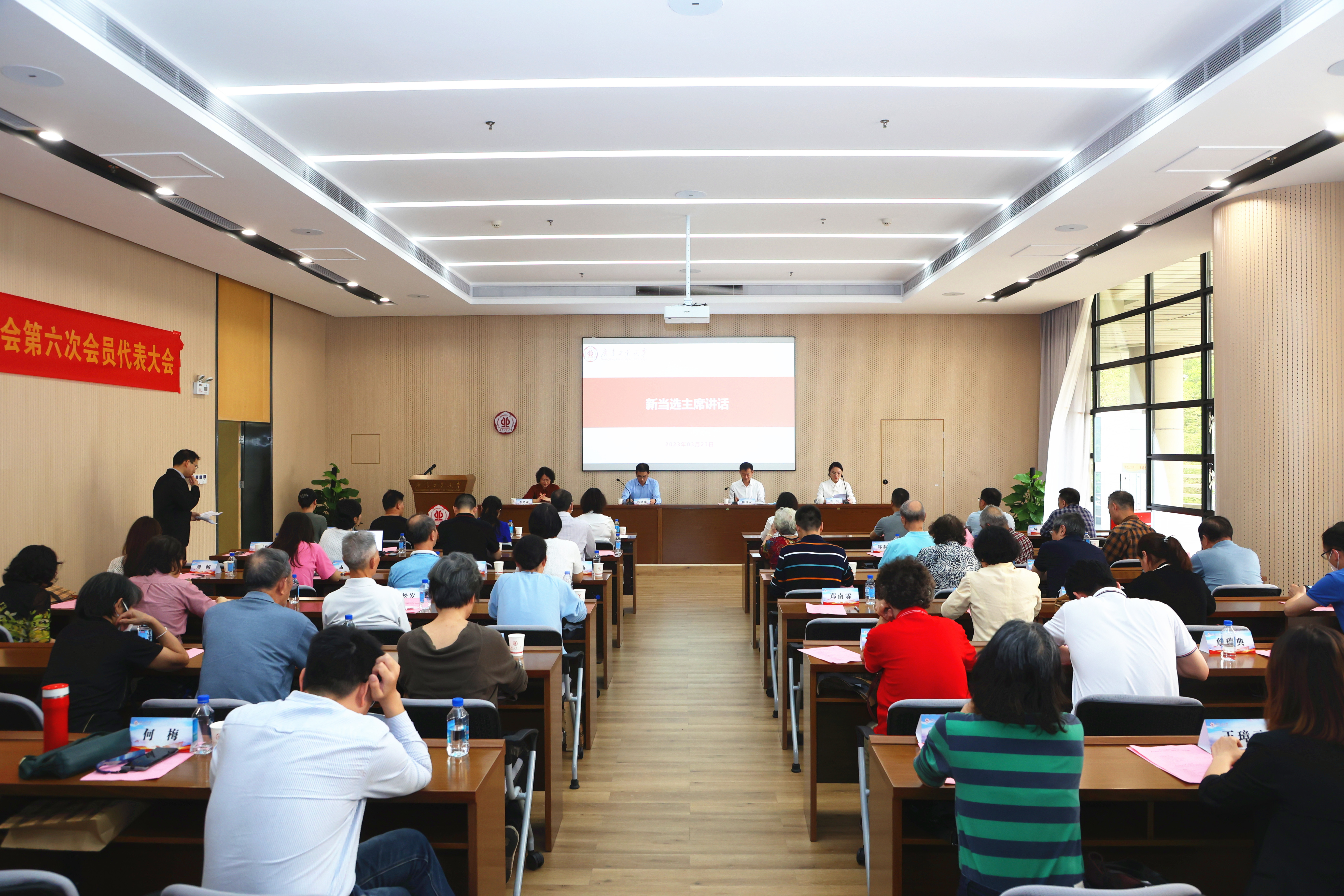 大会分两阶段举行。第一阶段,吴黎明代表学校侨联第五届委员会作工作报告,大会通过无记名投票选举王璋元、邓耀华、刘畅、刘艳、关俐娟、杨燕、吴黎明、武小梅、孟敏、袁兵、曾骥等11名同志为学校侨联第六届委员会委员。袁兵当选主席,杨燕、邓耀华、吴黎明、关俐娟当选副主席,曾骥当选秘书长。李传芳、郑泰胜、李美云、杜秋虹被聘为荣誉主席。