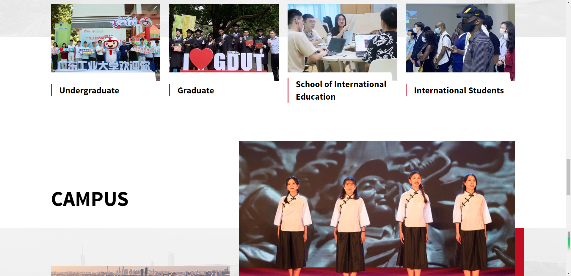 网站设计实现灵动大气、彰显国际风范的页面风格,同时凸显国际化的视野、思想和格局,文字统一性更强,网站简洁、实用,整体更加大气、现代、美观。新版官方英文网站是展示学校办学成果的窗口,也是学校对外交流的重要桥梁,为提升学校国际影响力和拓展学校国际合作与交流渠道开辟了重要的网络宣传途径。
