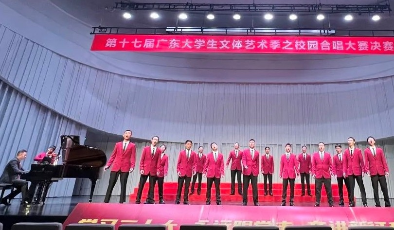 在刚刚结束的第十七届广东省大学生校园文体艺术季之广东大学生校园合唱大赛中,广工高水平艺术团-合唱团以绝对优势获得大赛重唱组第一名的佳绩,并受邀参与闭幕式表演。