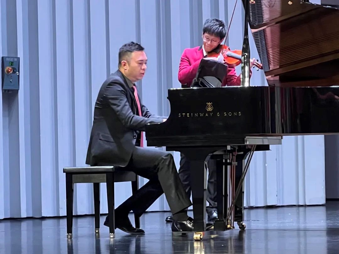 本次参赛,由通识教育中心副主任、合唱团指挥梁为副教授带队、并担任现场钢琴伴奏。合唱团演唱了两首参赛歌曲:一首是指定曲目《欢乐的那达慕》,一首梁为老师改编的自选曲目《恰似你的温柔》。比赛中,同学们全情投入,自信满满,以专业的歌唱水准征服了现场评委和观众,曲终,台下响起雷鸣般的掌声。
