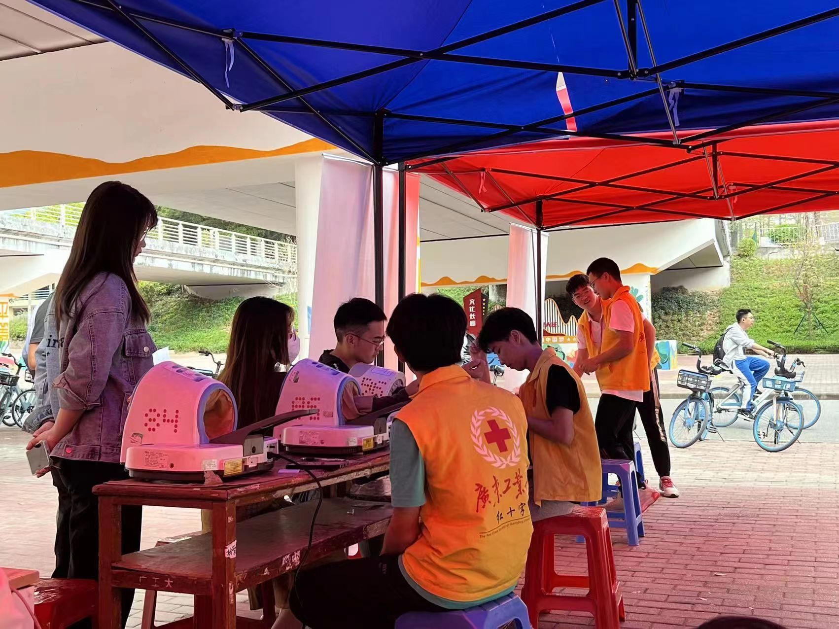 广工红十字会工作人员为献血同学测量血压