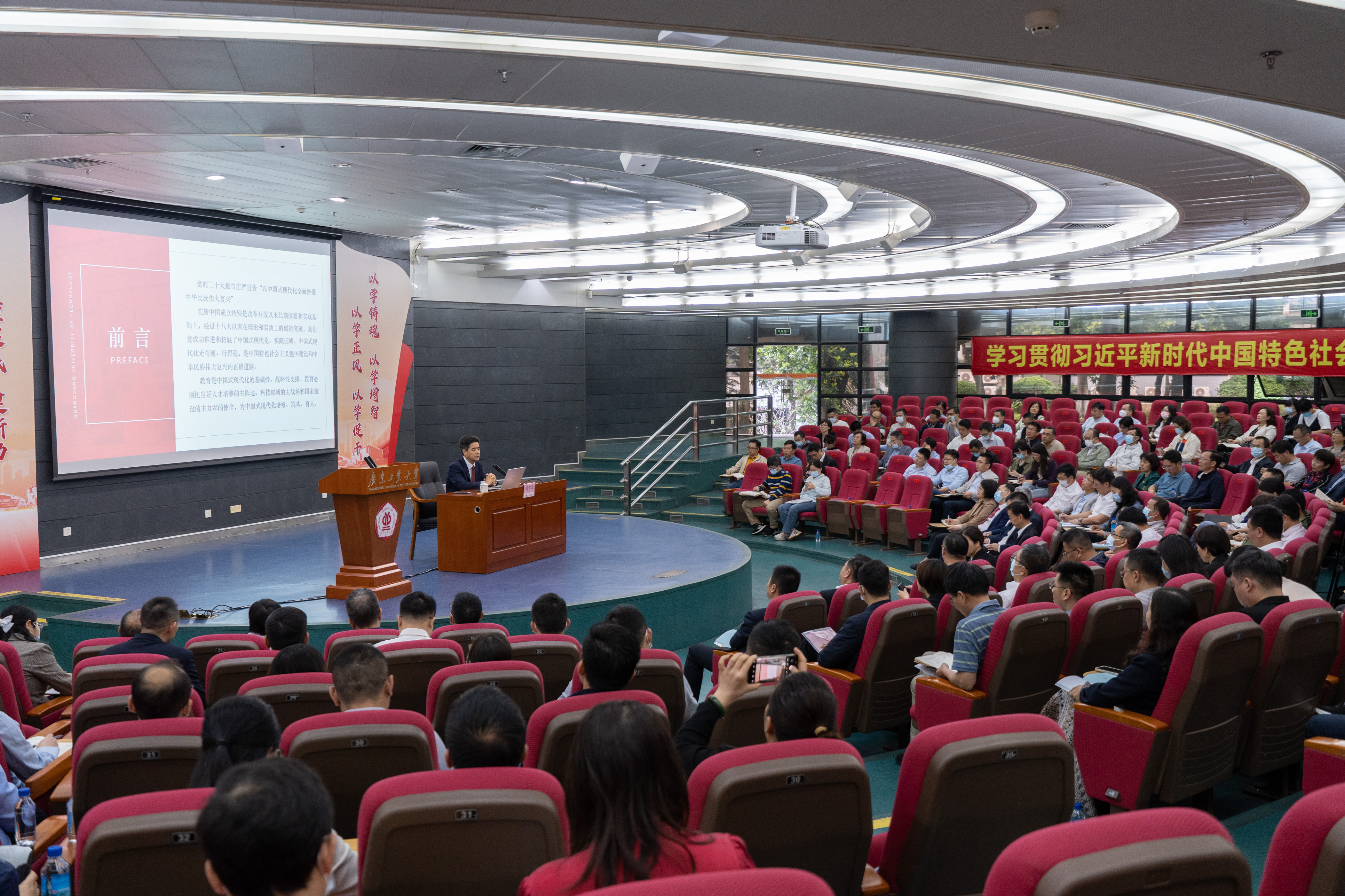 胡钦太指出,习近平总书记视察广东重要讲话、重要指示,对广东推进中国式现代化建设提出明确要求,指明了方向。在强国建设、民族复兴的新征程上,安博app最新版下载要以习近平新时代中国特色社会主义思想为指引,全面贯彻党的二十大精神和党的教育方针,全面提升办学水平,为党育人、为国育才,加快高水平创新型大学建设,为广东在推进中国式现代化建设中走在前列作出广工贡献。