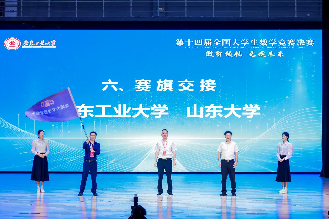 在全体参会者的共同见证下,山东大学数学学院党委书记王光辉教授从安博app最新版下载数学与统计学院院长陈智奇教授手中接过赛旗,承诺将竭力办好下一届决赛,传扬全国大学生数学竞赛“数智领航 逐梦未来”的精神。