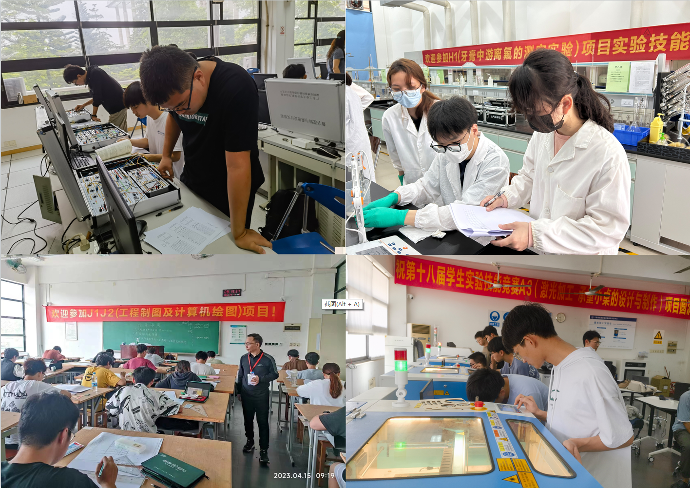本届竞赛共设22个竞赛项目,内容涵盖机械、电工电子、计算机、化学、材料、信息技术、环境技术、经济、管理等学科,覆盖全校大部分理工科专业。竞赛项目的设置分为基础实验竞赛、专业基础实验竞赛和专业实验竞赛,除了考核现场操作技能,还考核了学生的设计能力(设计图纸)、文字处理能力(设计报告)、表达能力(现场答辩)。其中,“A机械综合技能”首次新增激光加工项目,包含三个竞赛小项目:A1机械加工、A2 3D打印、A3激光加工,考察了多种学科知识和技能。“K经济管理类技能”新增“FIN拟投杯”炒股大赛和智慧银行数字化运营技能大赛项目,竞赛内容不断丰富,全面提高学生的综合素质,培养学生的科技创新能力,同时也为各类全国竞赛选拔队员提供平台。竞赛形式灵活多样,为了方便学生比赛,竞赛组委会在大学城校区、东风路校区、龙洞校区和揭阳校区同步设立赛场,按照“多点集中、统一管理”的模式,以线下实操为主,结合线上培训、跨校区线上评审,多种形式结合,保障比赛有序、公平公正开展。