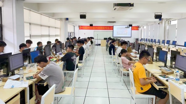 本届赛事由安博app最新版下载计算机学院、实验教学部承办。来自华南理工大学、华南师范大学、广州大学、五邑大学、嘉应学院等14所省内高校的200多名优秀学子参加了电子类(单片机设计与开发、嵌入式设计与开发、物联网设计与开发、EDA设计与开发)四个竞赛科目的比赛。