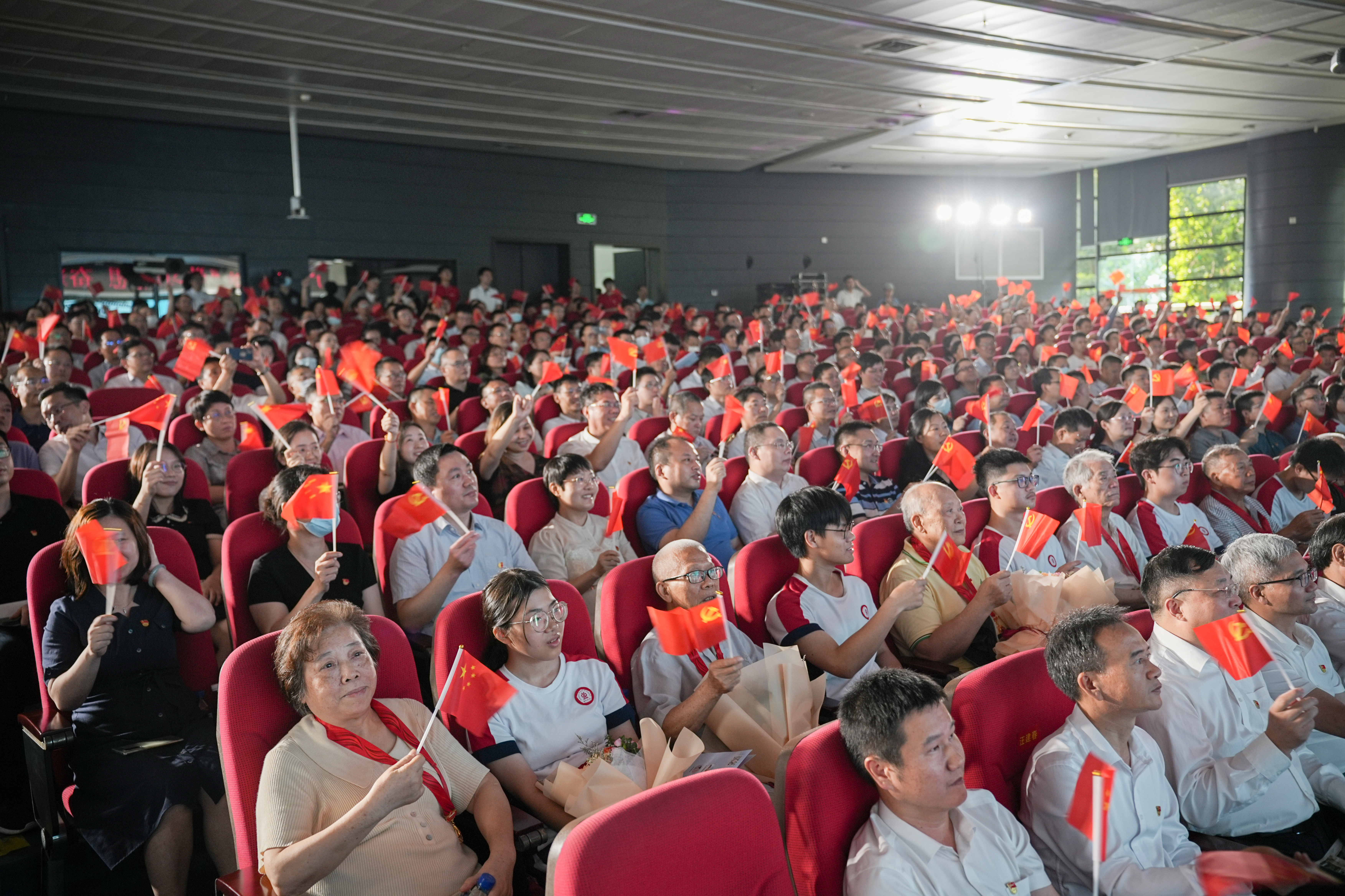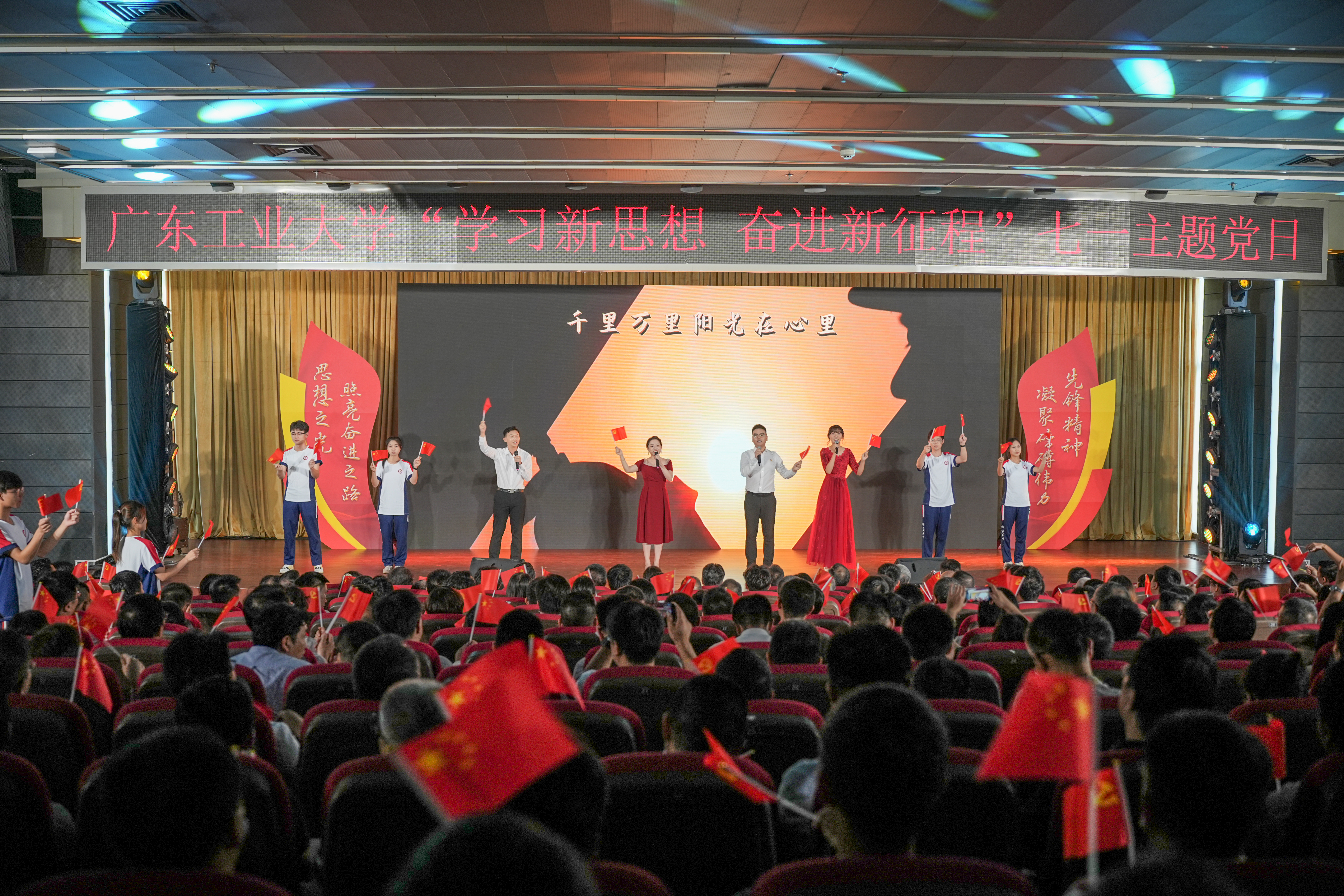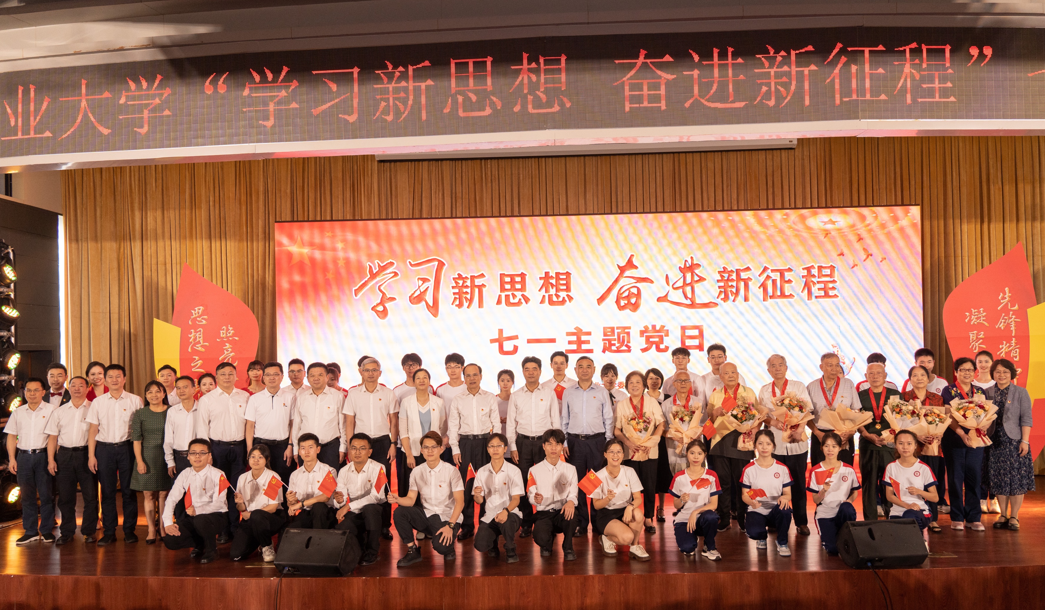高扬思想之旗,筑牢信仰之基;勇担先锋使命,凝聚奋进伟力。6月29日下午,学校党委举行“学习新思想 奋进新征程”七一主题党日活动,庆贺党的生日,开展党性教育,把学习贯彻习近平新时代中国特色社会主义思想主题教育推向深入,进一步激励动员广大党员和基层党组织踔厉奋发、勇毅前行,开创高水平创新型大学建设新篇章。省委主题教育第十七巡回指导组组长郭杰同志、指导组汪建春、胡琼珍同志莅临指导。全体在家校领导、中层党员领导干部和师生党员代表500余人参加活动。