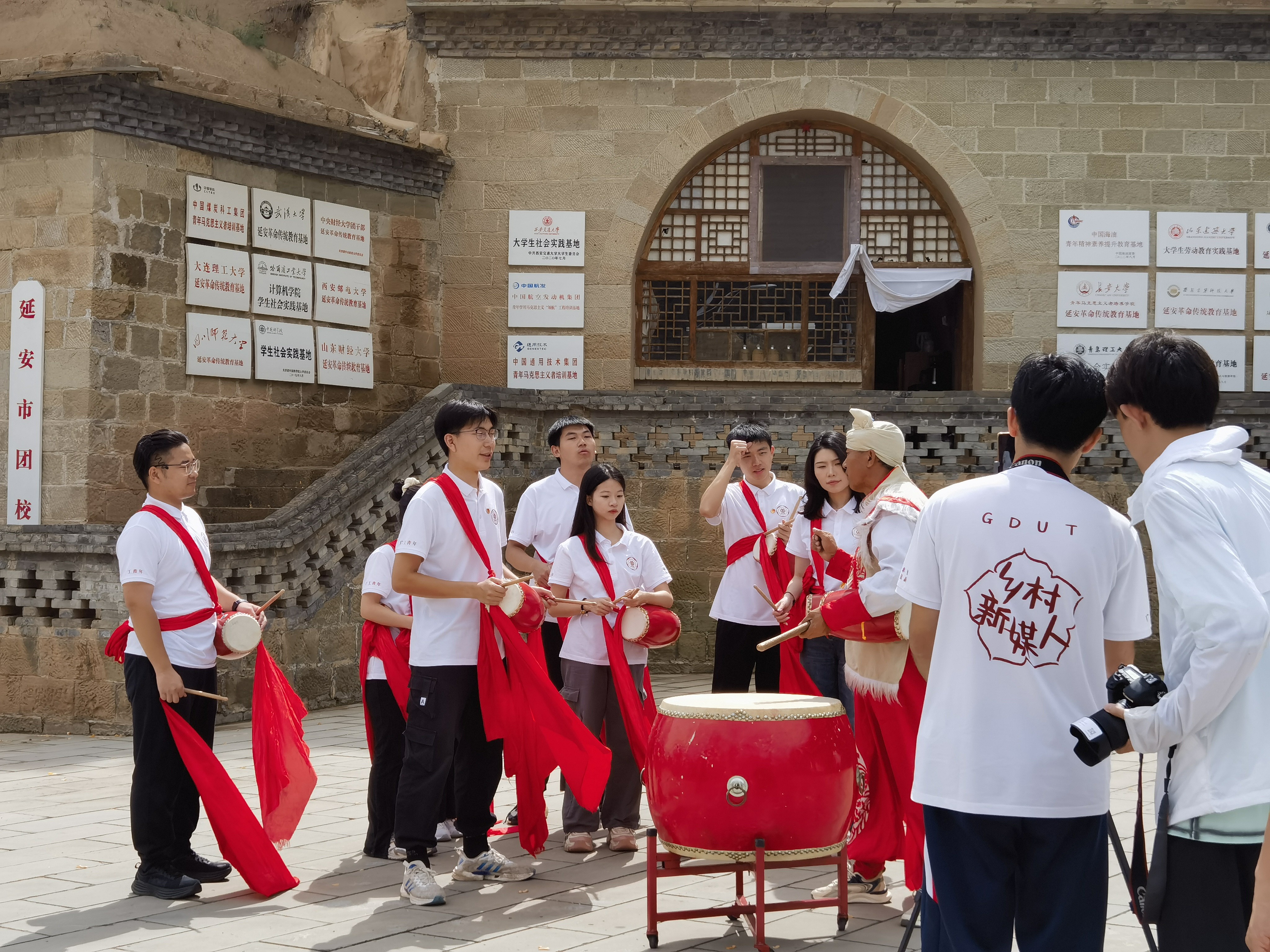 实践团师生学习安塞腰鼓、拍摄思政精品课素材