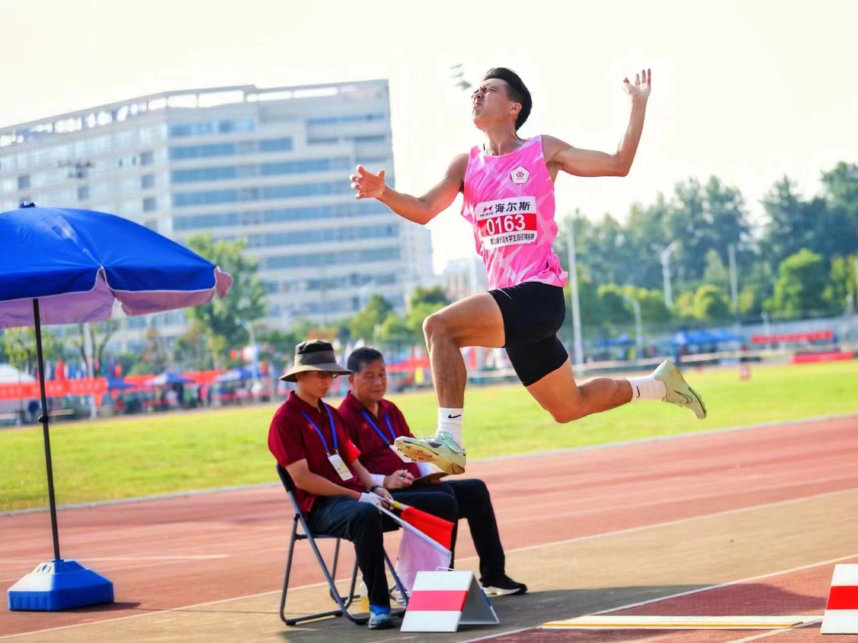 8月15日,在男子甲组三级跳远决赛中,倪凯弘同学跳出14.17米的个人最好成绩获得殿军并达标二级运动员。在男子甲组4×400米决赛中,丘煜、张泽辉、史少聪、罗胤龙同学奋战至最后一个比赛单元,最终以3′25″08的成绩取得殿军。