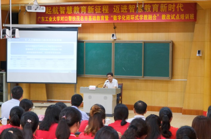 此次在茂名市启动“数字化闭环式学教融合”教学模式改革试点,是广工深入贯彻落实党的二十大精神,纵深推进国家教育数字化战略行动,全面落实关于建设高质量教育体系决策部署以及省委、省政府全口径融入式基础教育帮扶工作要求的具体实践,学校将以更高的责任感,更紧迫的使命感和扎实的工作作风,全力以赴地推进茂名市基础教育数字化转型,高质量做好对口茂名市基础教育帮扶工作,为打造广东教育强省贡献广工方案。