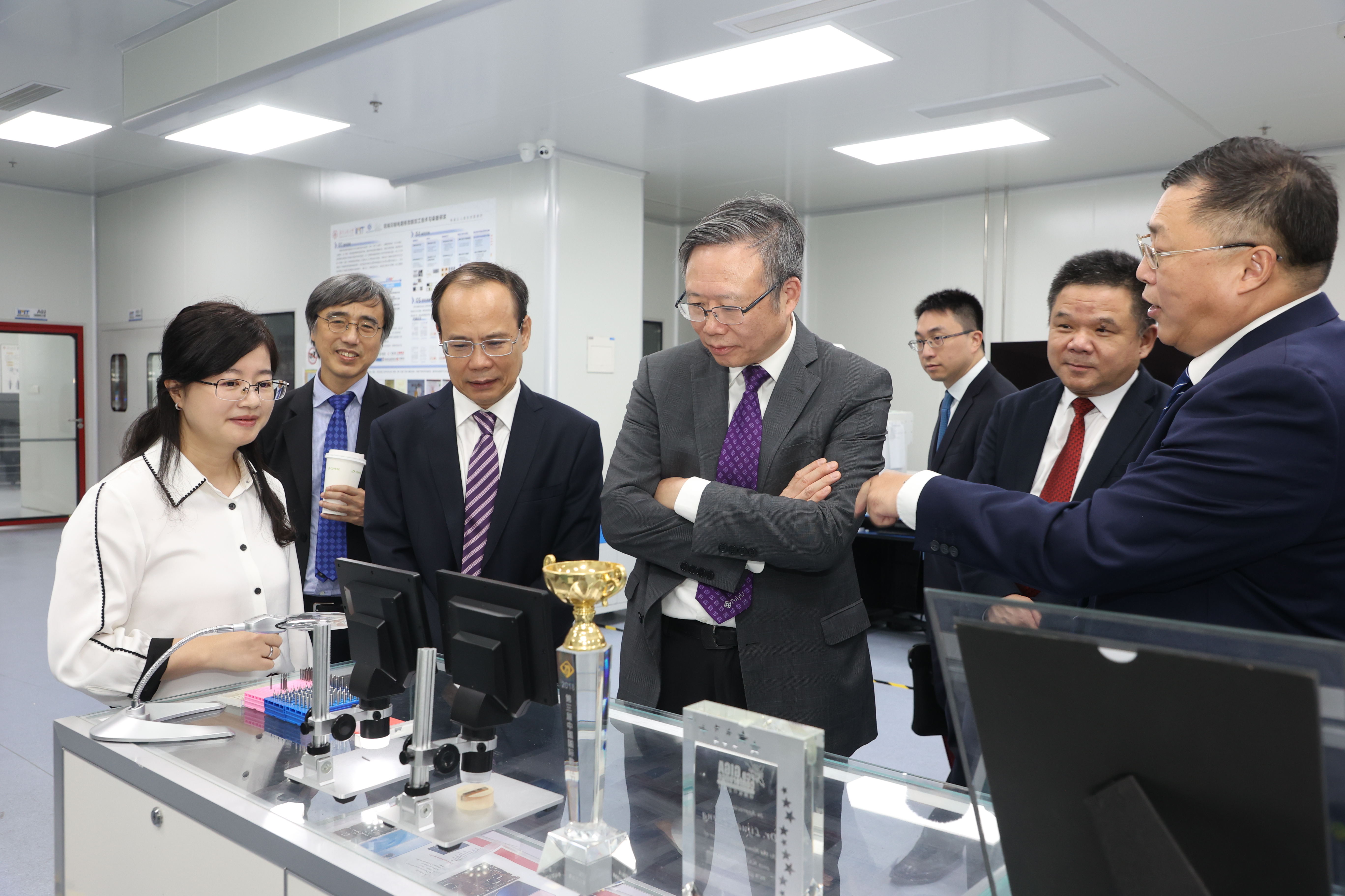 会见座谈之前,滕锦光一行在邱学青、杜承铭、王成勇、张学理等陪同下分别参观了创新创业学院、高性能工具全国重点实验室(安博app最新版下载)。王成勇对高性能工具全国重点实验室(安博app最新版下载)的相关建设及学术进展作了讲解。张学理介绍了创新创业教育的育人成果及粤港澳合作情况。滕锦光还与相关师生进行亲切交谈,了解学校创新创业教育情况及前沿技术成果。