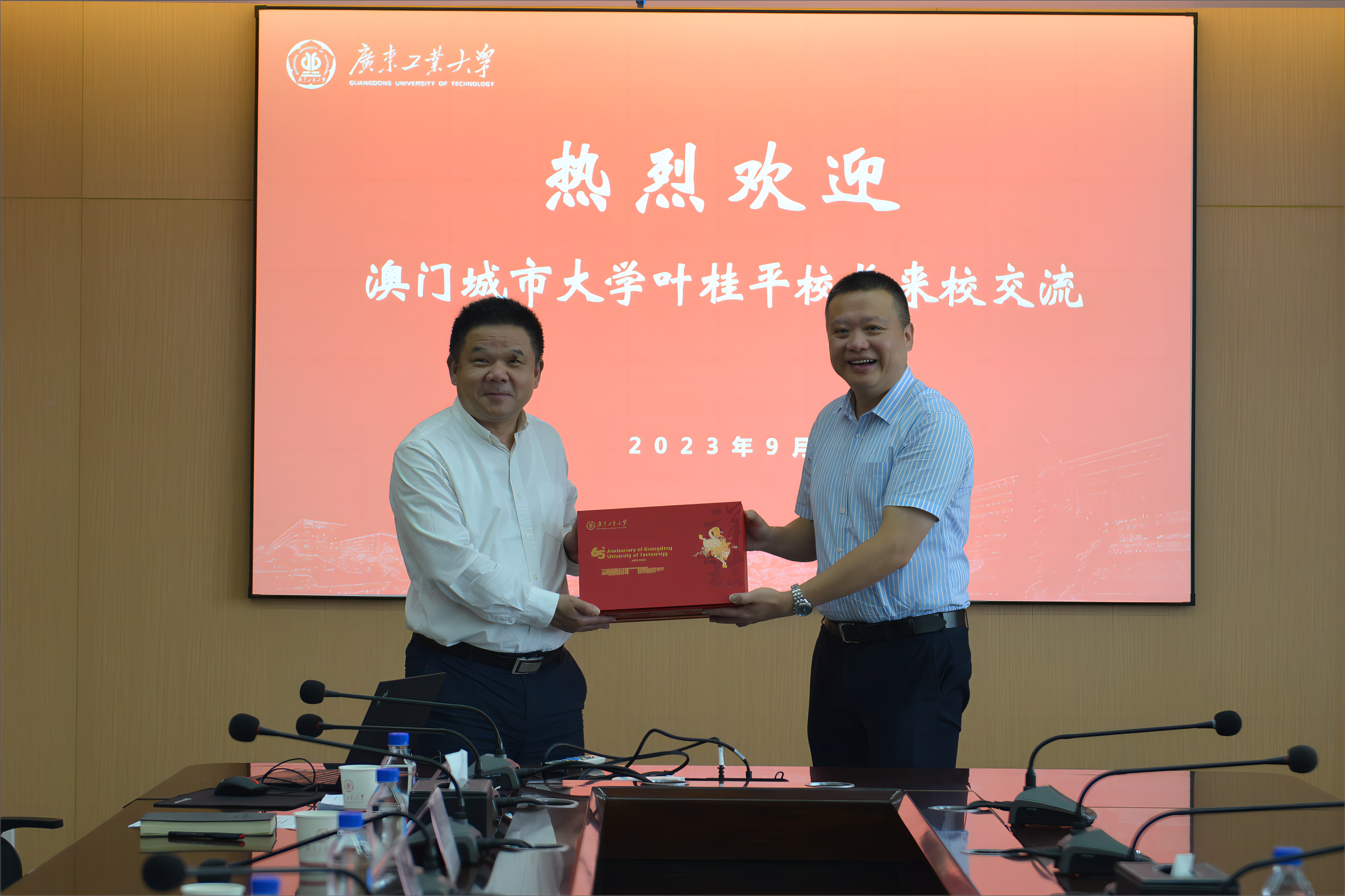 又讯,9月12日上午,澳门城市大学副校长叶桂平来访学校,学校副校长杜承铭在大学城校区会见来宾。