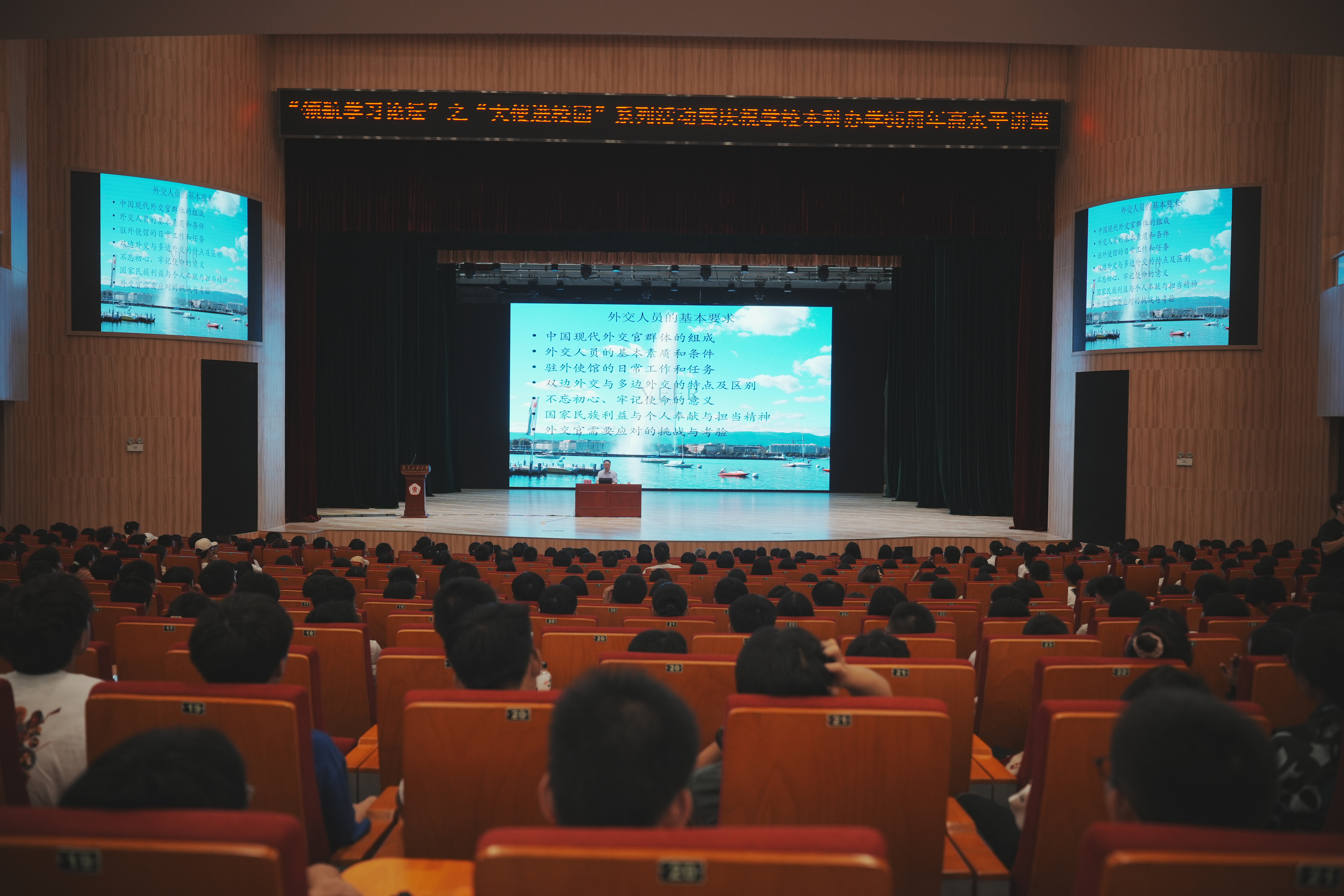 随后,刁鸣生以“国际交往中的中国智慧”为题,为学校500余名新生带来了一场别开生面的讲座。作为资深的外交官,刁鸣生有丰富的外交实践经验,他从自身丰富的外交经历出发,为大家讲述了多年奋斗在对外工作一线的外交故事。刁鸣生从中国现代外交官群体的组成着手,用四个惊心动魄的经典案例,深入浅出地介绍了驻外外交官的日常工作任务,具体阐释了双边外交与多边外交的特点及区别、当代外交官需要应对的挑战与考验,应该具备的政治素养及危机处理能力,阐释了外交官的使命与担当。刁鸣生寄语新生:新时代新青年要学深悟透习近平外交思想,不断提高政治站位,增强“四个意识”,坚定“四个自信”,做到“两个维护”,要深刻领悟“两个确立”的决定性意义;要掌握好语言这一项技能,用语言打开世界的大门,从而更好的了解全球文化;要珍惜青春年华,掌握真正的知识本领,将个人发展和祖国建设紧密联系起来,为维护世界和平、促进人类进步事业做出贡献。