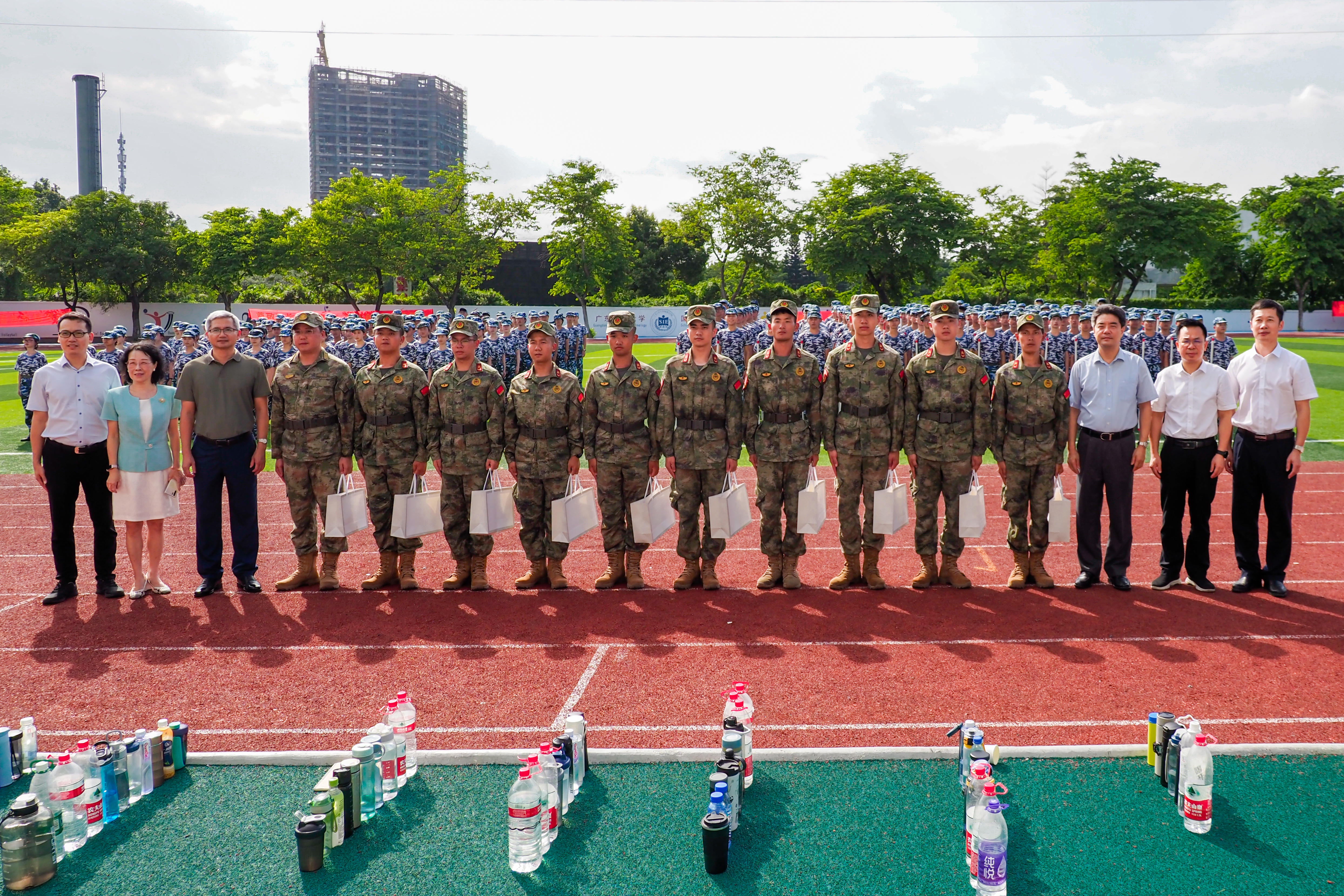 胡钦太对参训的2023级学生在精神面貌、纪律观念、集体意识等方面取得的显著进步,给予了鼓励和肯定,充分展现了广工学子肯吃苦、敢奋斗、勇争先的精神风貌。并充分肯定了教官们以身作则、严守纪律、无私奉献的敬业精神和优良的军人品质,并向承训教官送上慰问品,以示感谢和关怀。