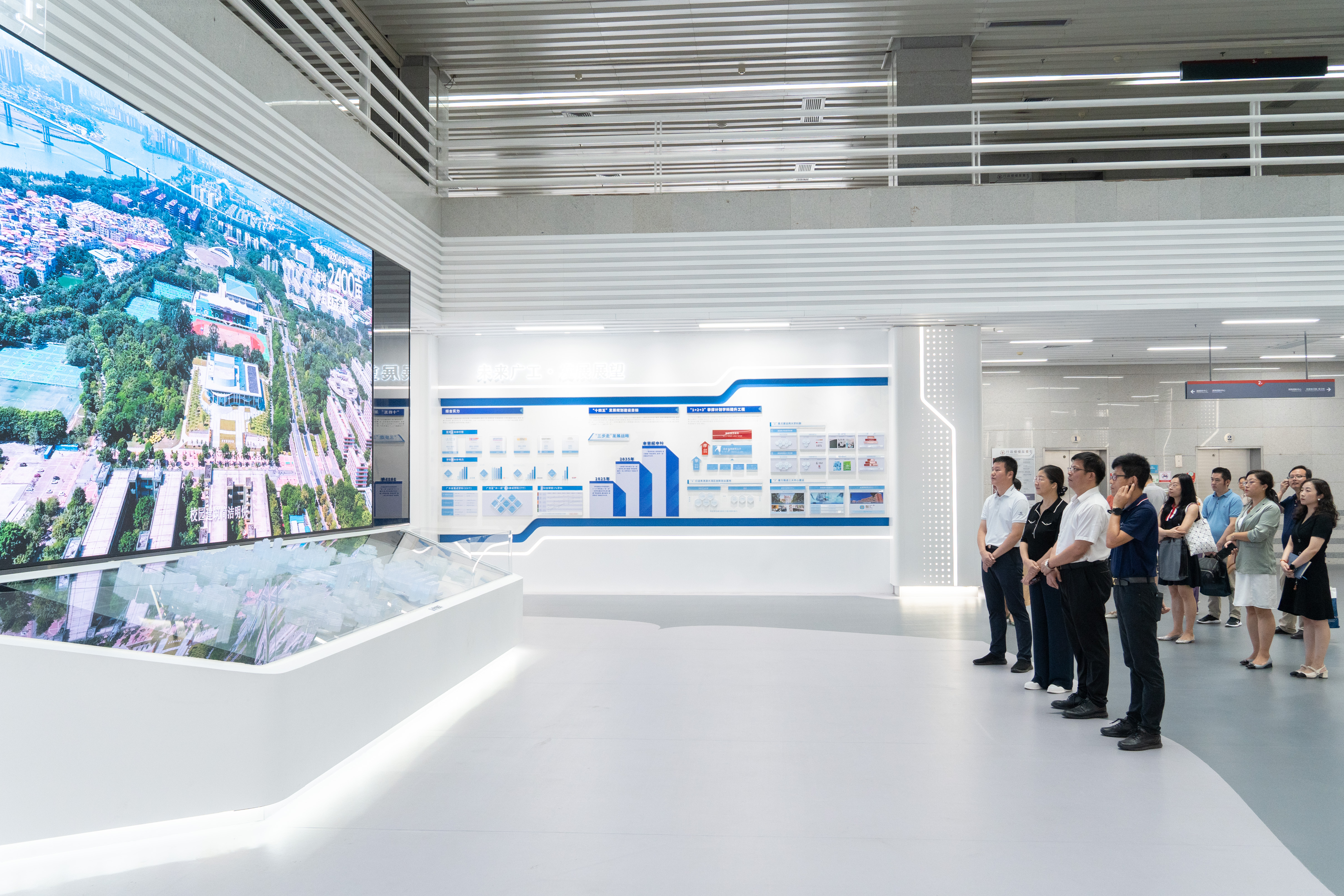 朱蔚蔚对邱亚洪一行来访表示热烈欢迎,陪同参观智慧展厅、融媒体中心。她介绍了学校发展历程和发展现状,特别重点介绍了“1+2+3”攀撑计划学科提升工程、融媒体中心建设工作。她表示,学校历来高度重视宣传思想文化工作,坚持“内聚人心、外树形象”两项任务,不断凝练广工精神,发出广工声音,讲好广工故事,树立广工形象。