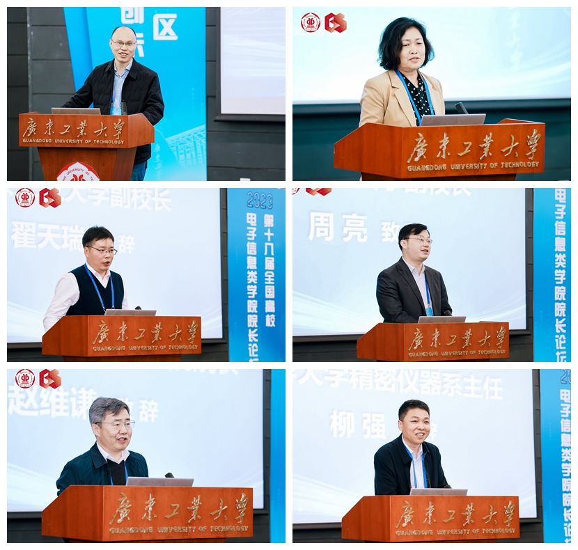 全国高校电子信息类学院院长论坛执委会负责人卢湖川教授代表执委会致辞,介绍了论坛由来与历届举办情况,预祝本次大会取得圆满成功。广东技术师范大学校长戴青云教授、北京工业大学副校长翟天瑞教授、南京邮电大学副校长周亮教授、北京理工大学光电学院院长赵维谦教授、清华大学精密仪器系主任柳强教授分别做了精彩的开幕致辞。