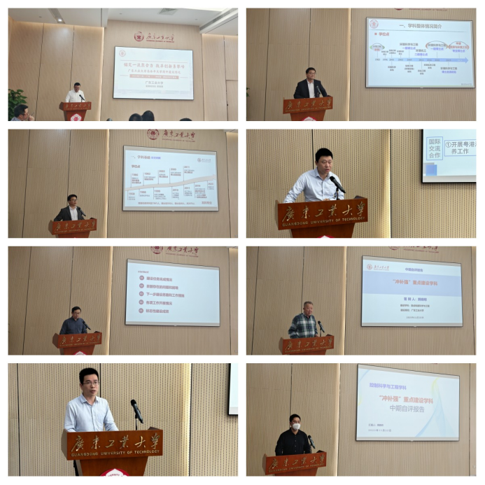 发展规划处主要负责人从发展背景、改革实践、建设成效、问题梳理、未来展望等方面作“冲补强”学校整体建设情况汇报。机械工程、控制科学与工程、材料科学与工程、环境科学与工程、化学工程与技术、集成电路科学与工程、设计学等7个“冲一流”重点建设学科所在学院负责人分别从人才培养、师资队伍、科学研究及社会服务等方面作学科建设情况汇报。