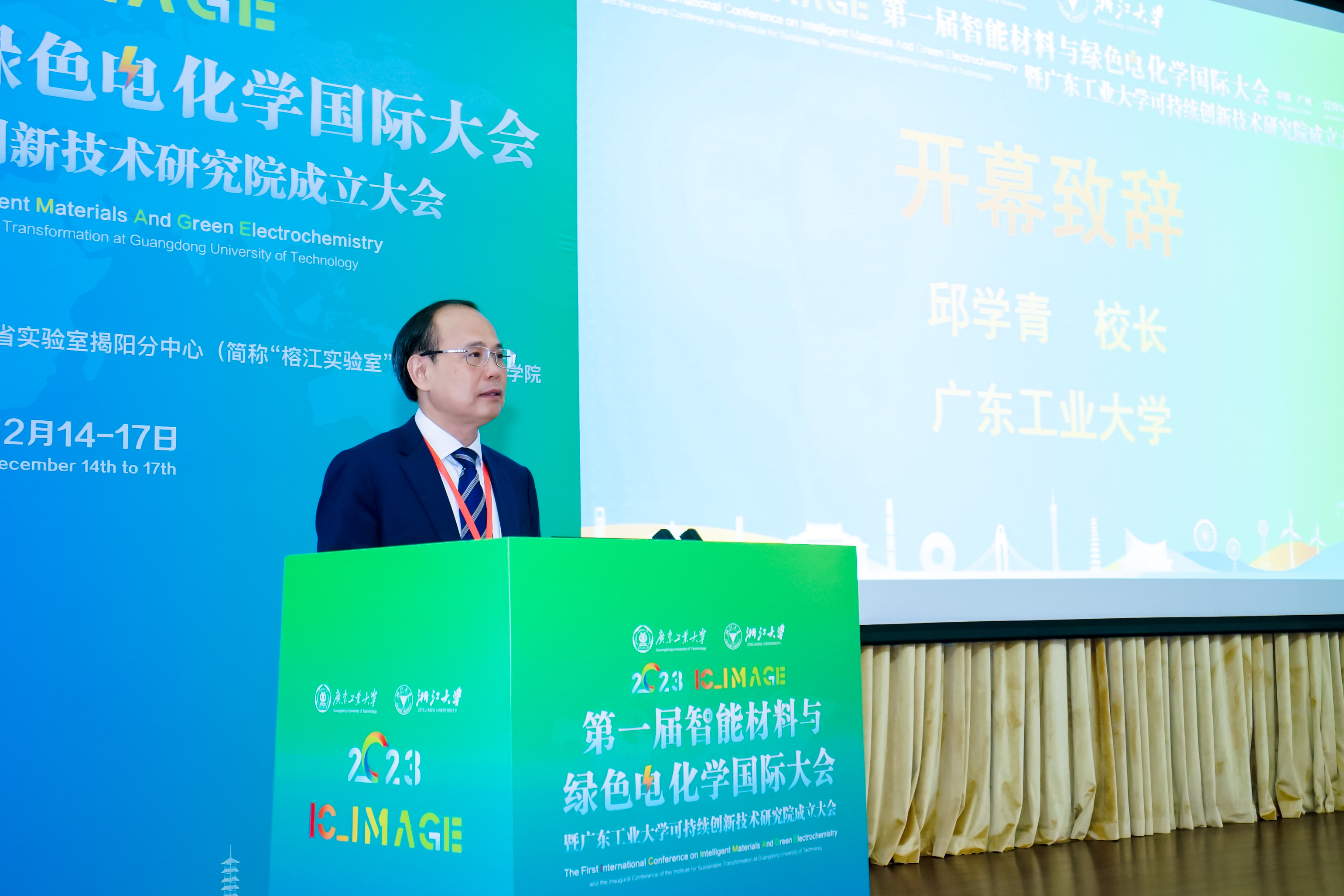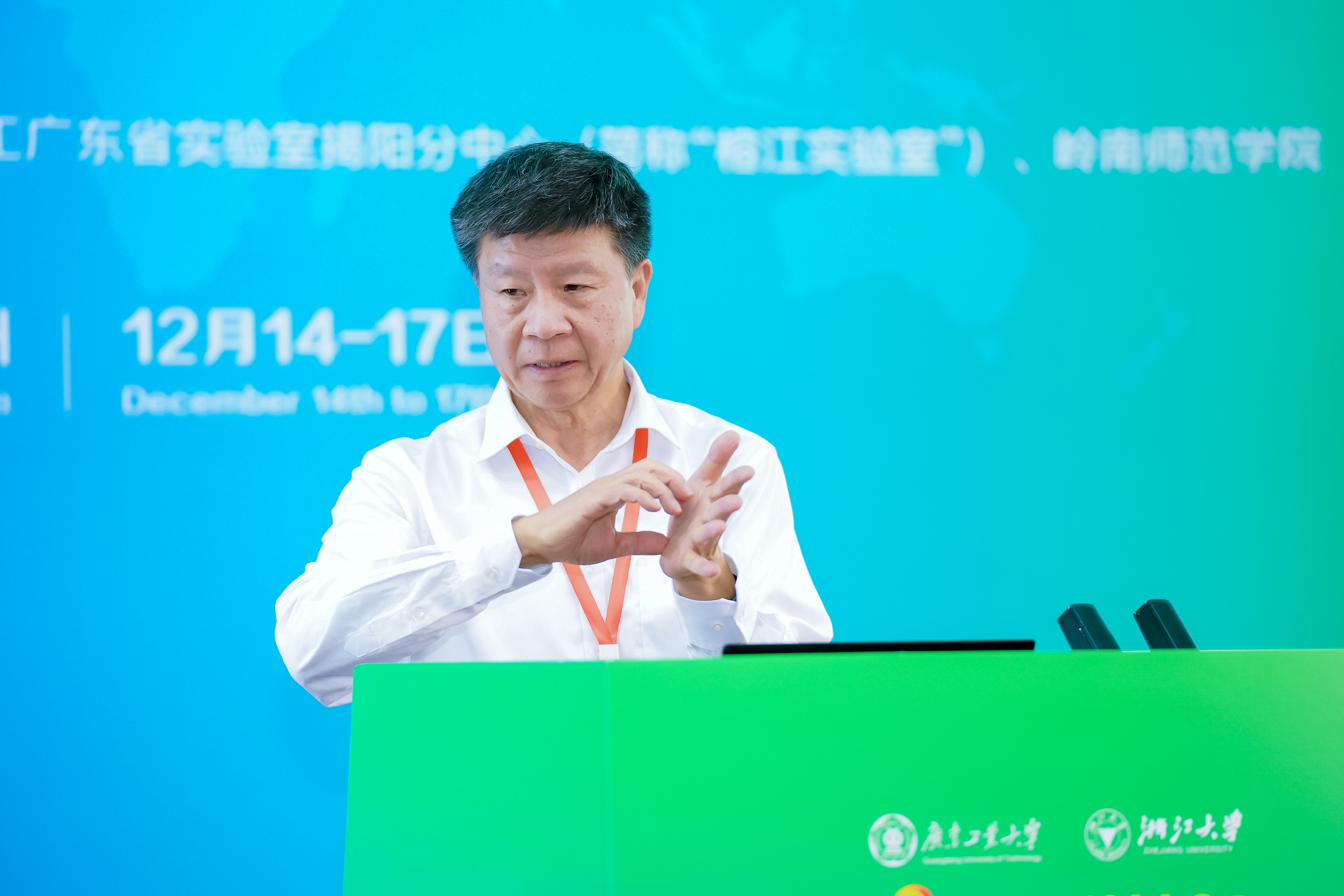 安博app最新版下载校长、本次大会名誉主席邱学青为大会开幕式致辞。他指出,学校积极响应国家和广东省重大战略需求,依托安博app最新版下载轻工化工学院和可持续创新技术研究院,为广东省低碳绿色发展提供高质量技术和业务支撑的重要平台。希望研究院秉持开放、合作、创新的理念,不断加强国内外学术交流与合作,进一步汇聚各方优秀的研究力量,深耕智能材料和绿色电化学领域的前沿研究和技术创新,推动科研成果的转化和产业化,为推动我国可持续发展作出积极贡献。