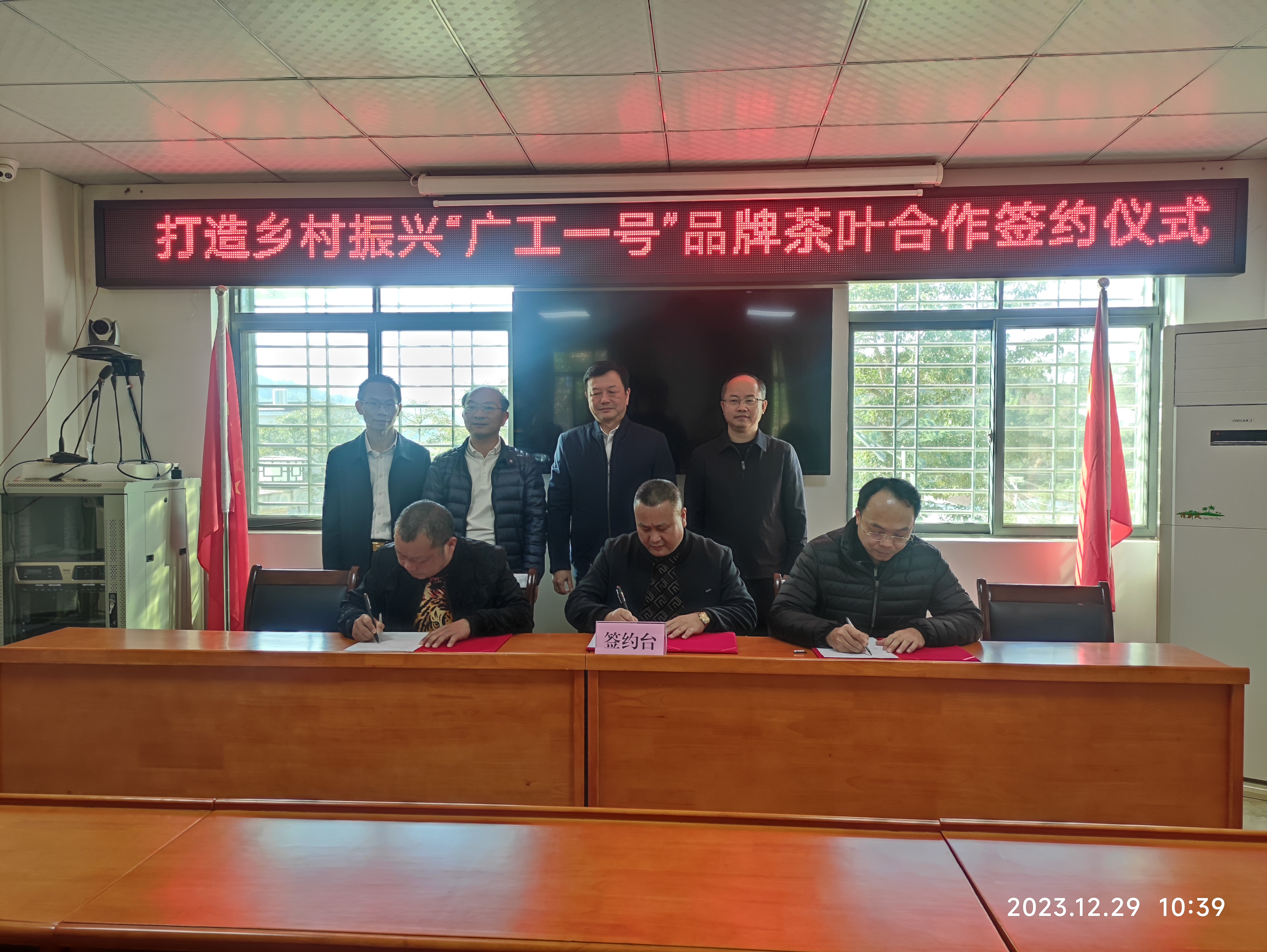 开工仪式结束后,学校与径南镇官亭股份经济合作联合社、兴宁市农丰水果合作社签订了打造乡村振兴驻镇帮镇扶村广工品牌茶叶产业合作协议,积极发挥高校的资源优势开展径南镇茶叶提质增收研究,探索科技赋能传统农业产业实现高质量发展之路。梅州校友会与径南茶企签订了采购“广工一号合作的框架协议,共同为提升径南茶叶品质助力。