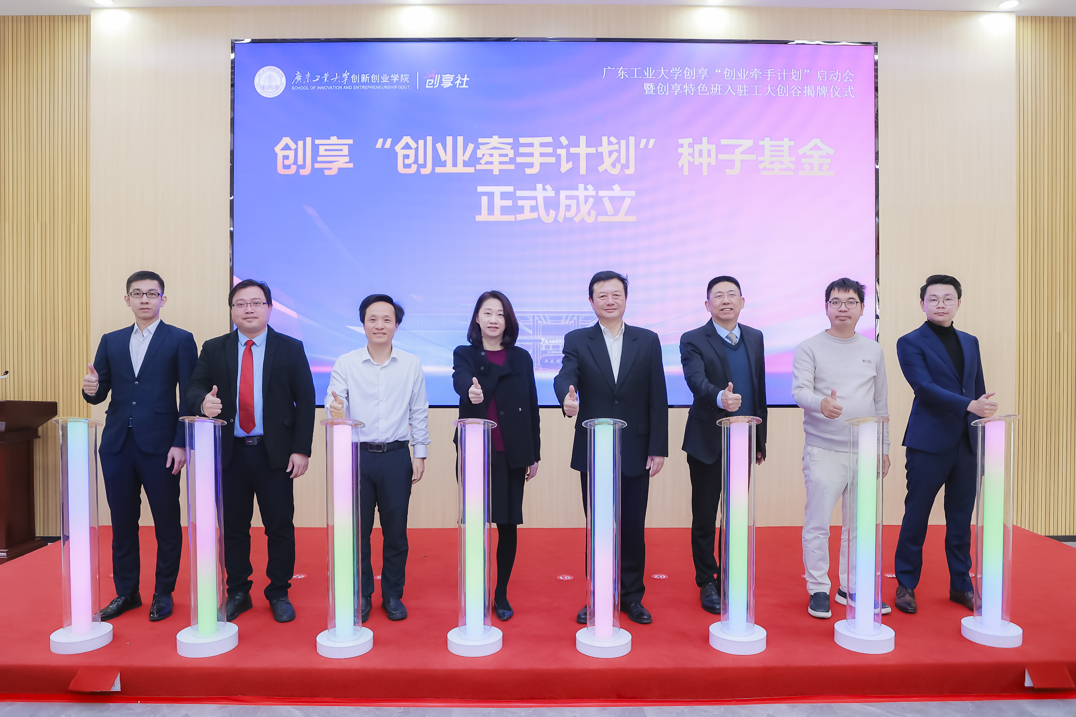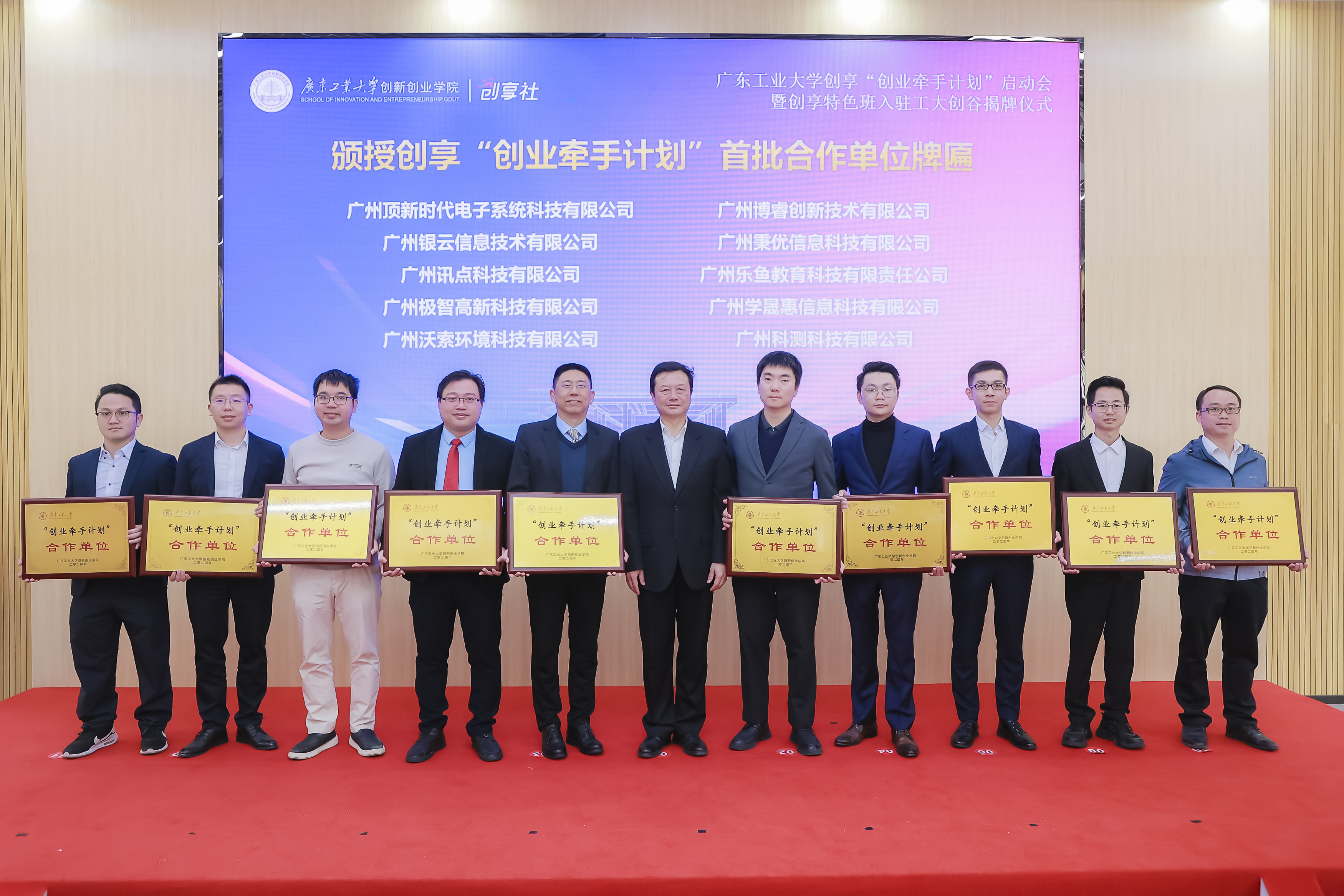 1月12日,创享“创业牵手计划”启动会暨创享特色班入驻工大创谷揭牌仪式在国家级创新创业教育实践基地-工大创谷融合中心顺利举行。学校党委常委、副校级干部张学理,广州大学城管委会主要负责人出席仪式。