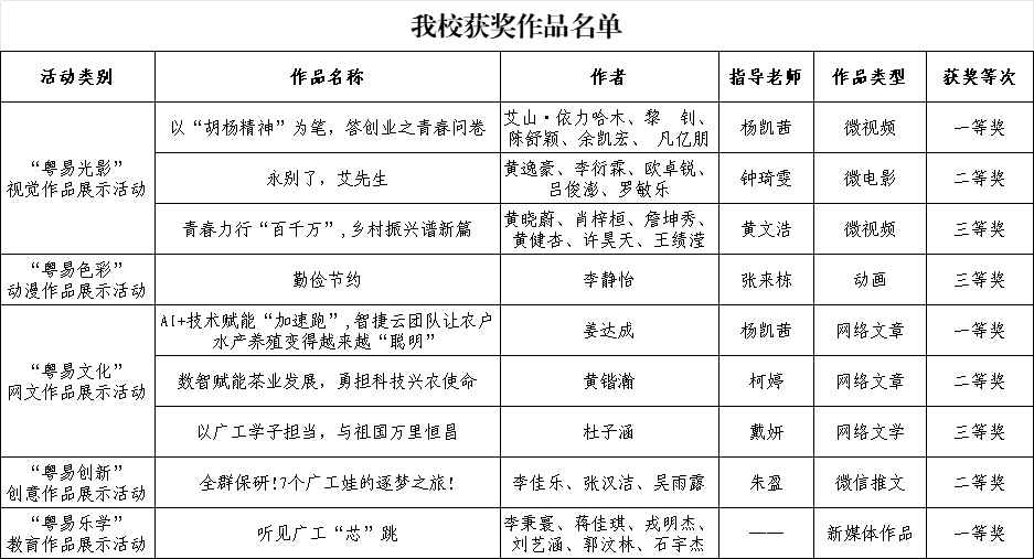近日,广东省教育厅公布了第八届广东高校网络媒体展示节活动结果,我校共获得一等奖3项、二等奖3项、三等奖3项。在此向获奖师生表示祝贺!