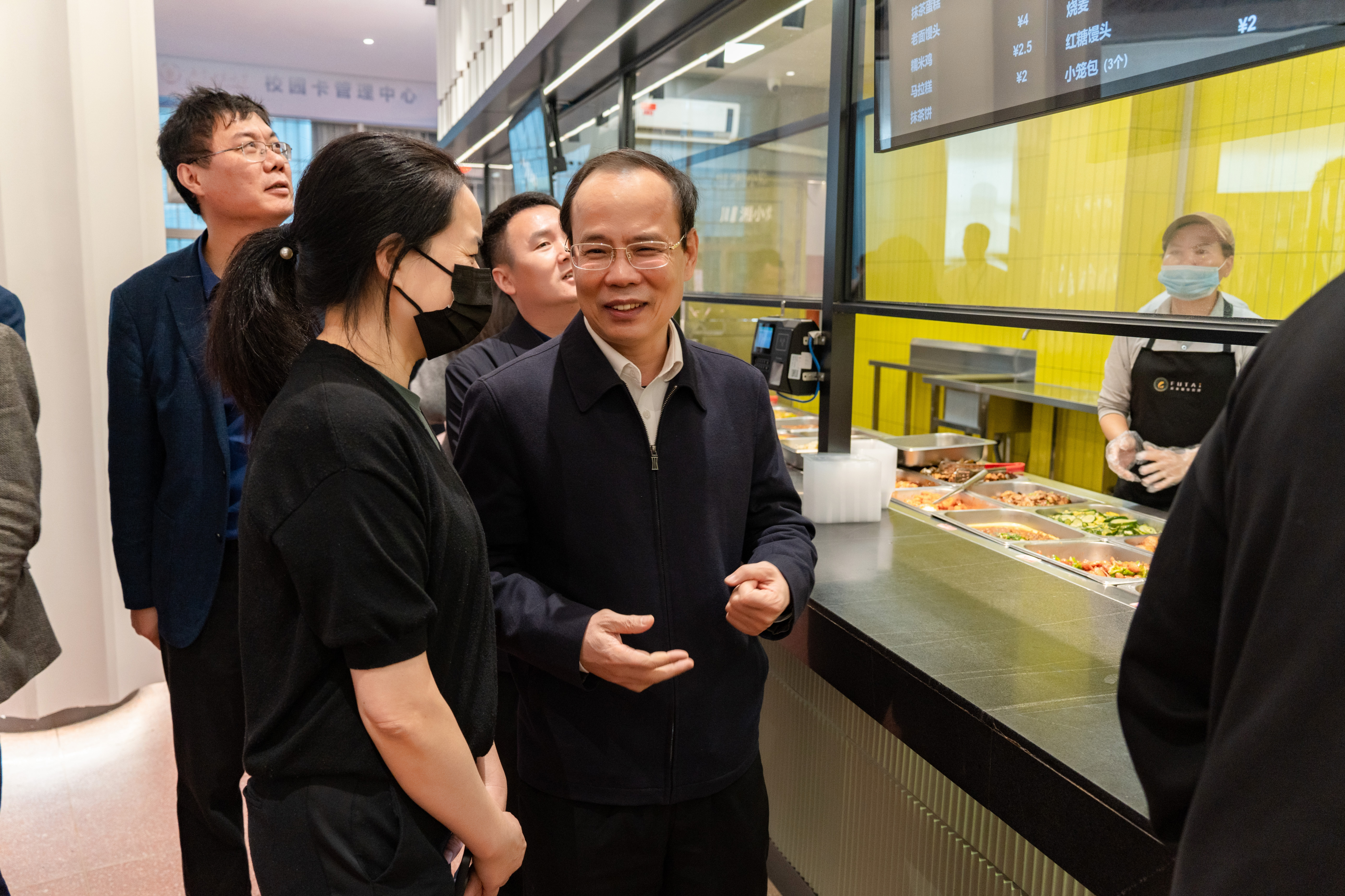 邱学青走进课堂指导教学工作,对教学过程、教学方法、教学效果和教学设施等情况进行全面了解,与任课教师交流,鼓励教师积极探索,不断提高课堂教学效果。在管理学院,邱学青参观了学院广场、门楼、形象墙等特色空间改造情况,调研了MBA、EDP专用课室需求情况,并对实验楼阶梯课室改造工作作出部署。邱学青还先后来到环湖栈道、食堂等地,与师生亲切沟通,关心师生学习工作生活,了解校区建设、后勤保障等最新情况,共谋发展良策。
