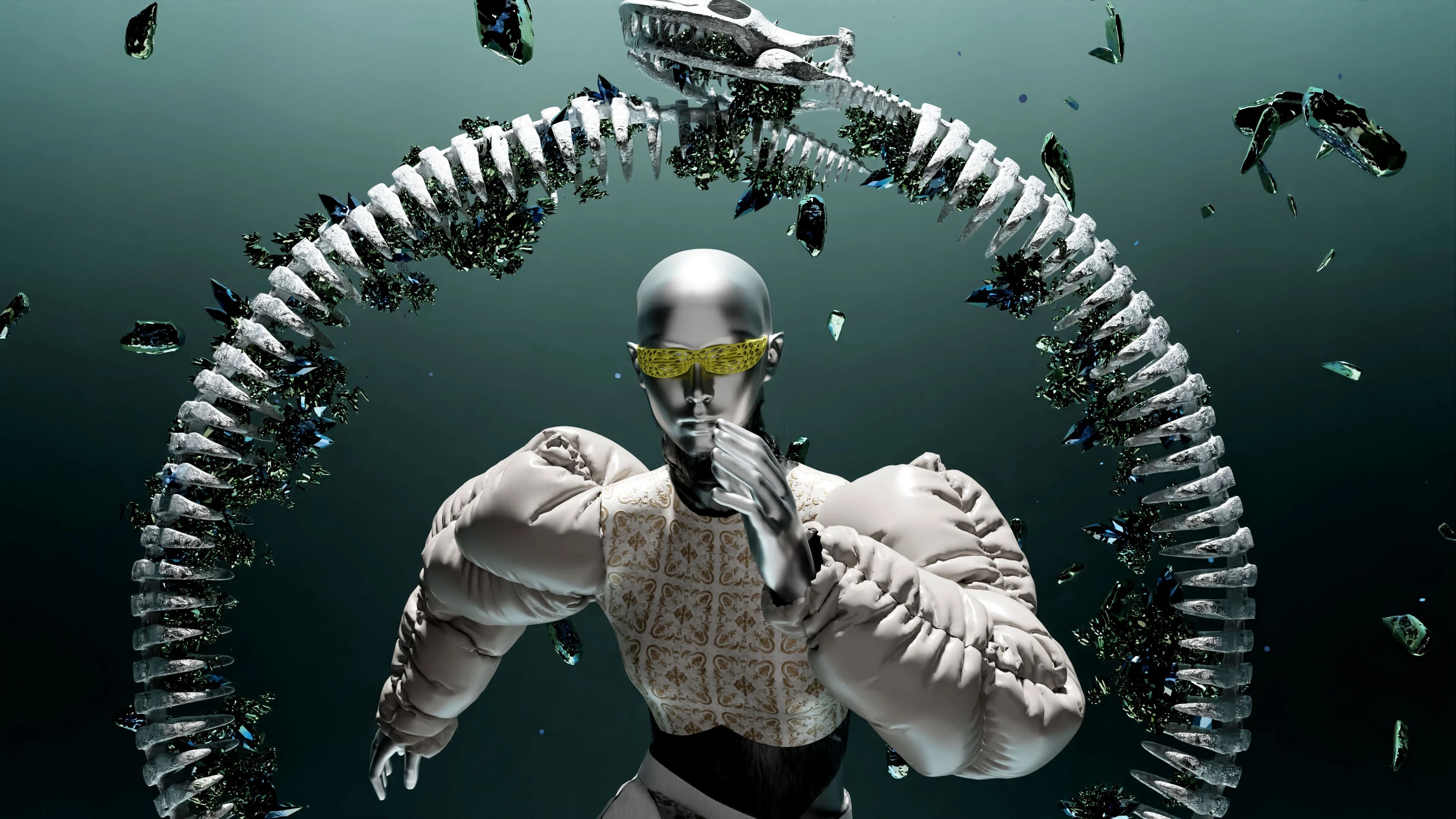 “君未睹夫巨丽也,独不闻天子之上林乎?”,竹林、水势、山川、走兽,你可曾见过如此恢弘的上林场景;“崇山矗矗,巃嵷崔巍,深林巨木,崭岩㟥嵳”,一幅壮丽的射猎上林画卷在人们眼前徐徐展开。本次发布的“上林赋”系列以西汉辞赋家司马相如的《上林赋》为灵感,结合中国古代传统林苑景观,想象描绘出壮丽非凡的上林苑中,身手敏捷勇猛干练的猎手形象。为了更好的展现文化元素,服装廓形上以传统汉服的形制为基础进行现代化及虚拟化改良,再对面料纹理的处理中使用了中华传统的纹理草木纹以及兽面纹等,从传统图案中提取元素并进行抽象处理以塑造身手不凡的皇家伴骑猎手形象。