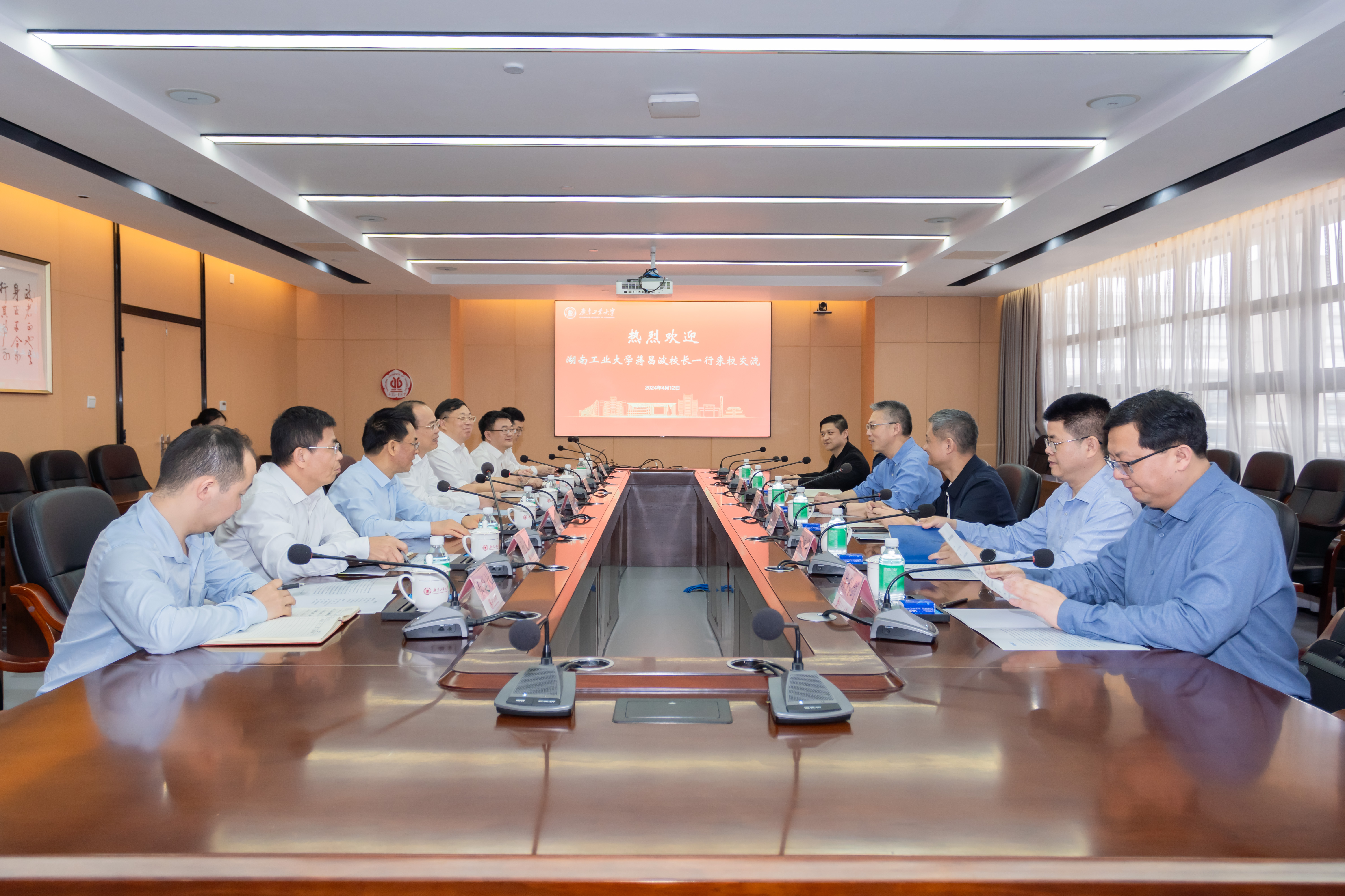 4月12日,湖南工业大学校长蒋昌波、副校长龙永红一行来校交流,双方在大学城校区行政楼702会议室展开座谈。学校校长邱学青出席并致欢迎词,校党委常委、副校长王成勇主持会议,党委办公室、校长办公室、发展规划处、教务处、科学研究管理部、研究生院等单位相关负责人参加交流。