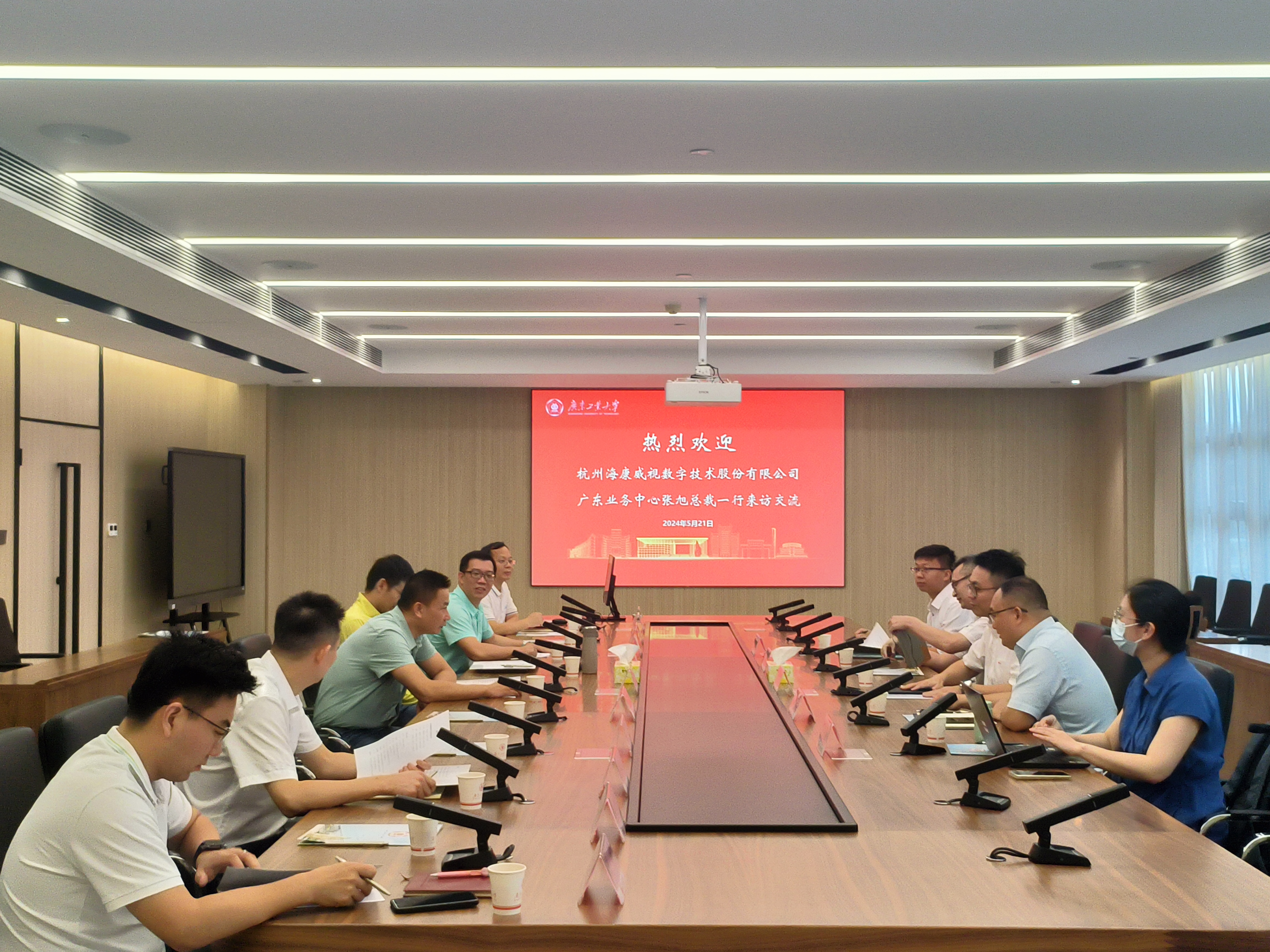 2024年5月21日下午,海康威视广东业务中心总裁张旭一行来校交流座谈。学校党委常委、副校长鲁仁全在行政楼602会议室会见来宾,双方围绕人才培养、科研平台建设、智慧校园建设等主题进行了座谈。学校党委办公室、校长办公室、信息化办公室、教务处、科学研究管理部、学生工作处、保卫处、网络信息与现代教育技术中心、对外联络与校友事务办公室负责人参加了座谈会。