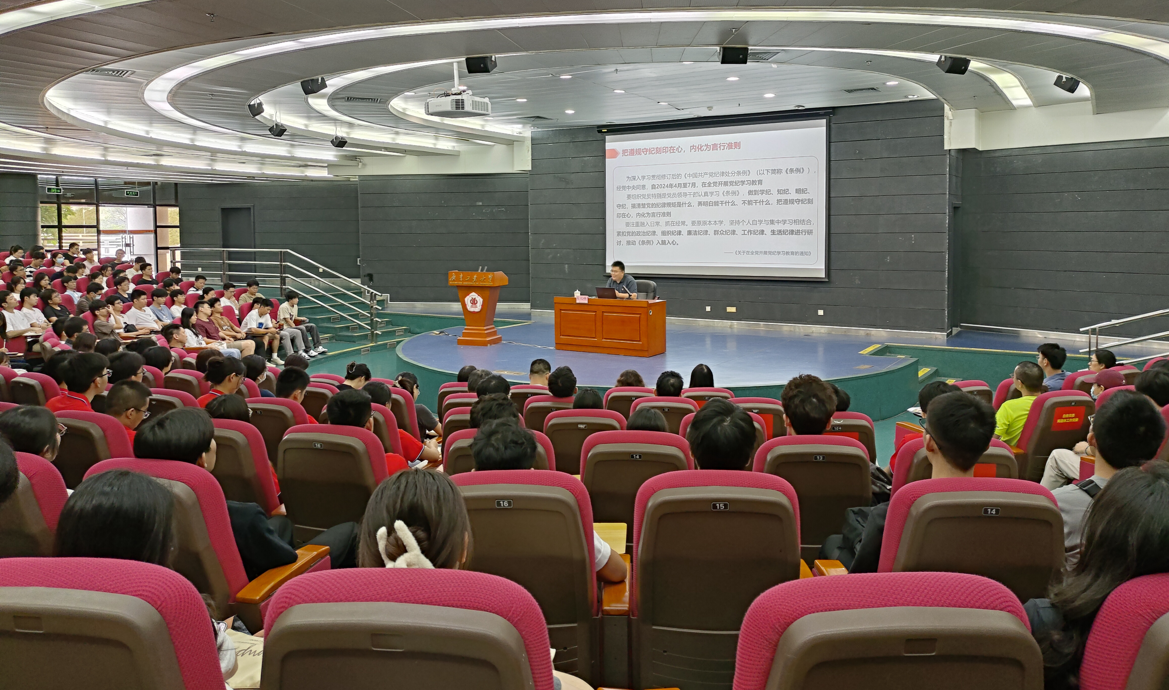 5月22日下午,学校依托“星火讲堂”举办党纪学习专题讲座,邀请中共广东省委党校党的建设教研部副主任、广东党建研究中心研究员吴记峰作专题报告,对党员学习新修订的《中国共产党纪律处分条例》(以下简称“条例”)进行集中辅导。