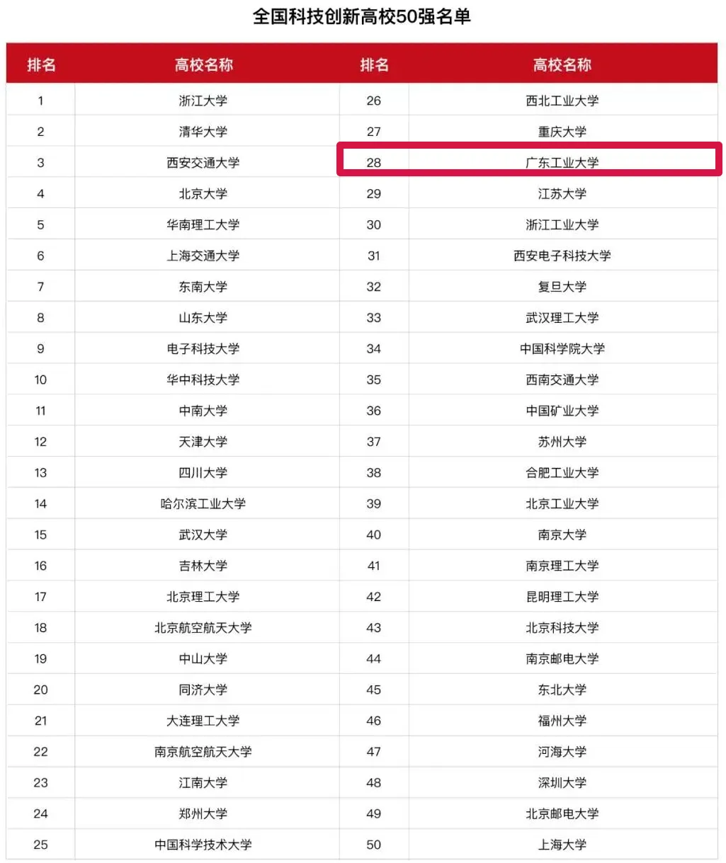 5月30日,《全国科技创新百强指数报告2024》在京发布,该《报告》还公布了全国科技创新高校50强,广工位列全国28,较去年上升17位,居广东省属高校第1。