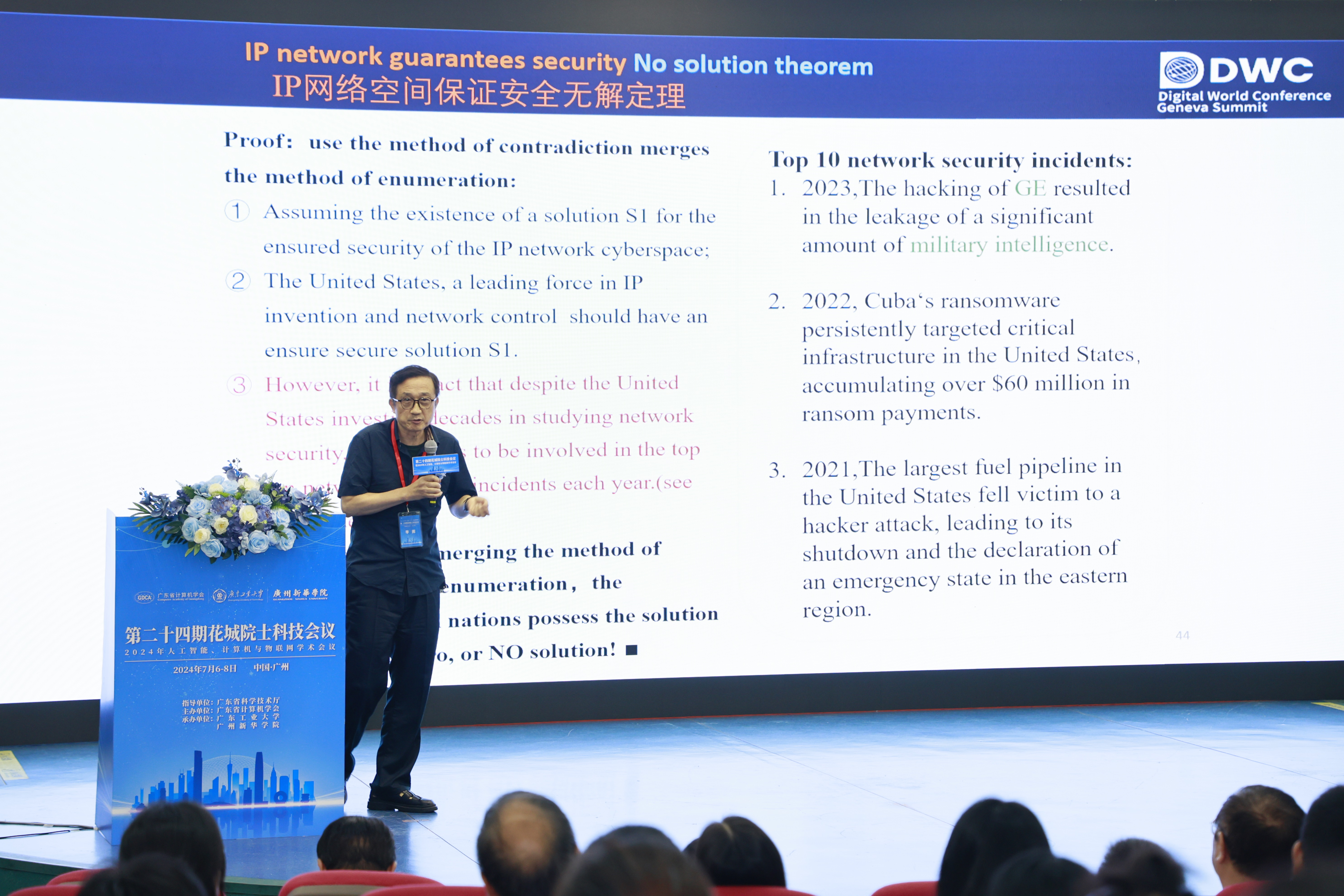 李挥院士在演讲主题《人类网络空间命运共同体理念之解决方案MIN—根治IP体系三大顽疾的全球第一方案》中介绍研究团队在全球首次提出了多边共管多标识网络体系MIN及原型。