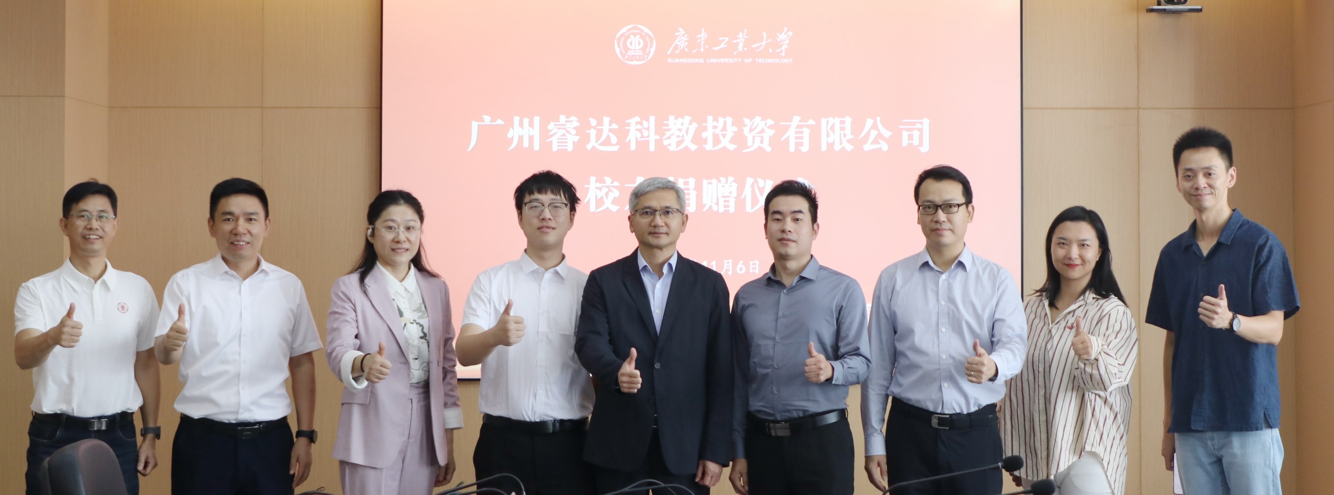 近日,学校在行政楼702会议室举行广州睿达科教投资有限公司校友捐赠仪式。学校党委副书记、校友会会长陈卓武出席仪式,党委学生工作部、对外联络与校友事务办公室负责同志及相关人员,广工校友、广州睿达科教投资有限公司总经理黎耀煜和副总经理陈健浩参加活动。