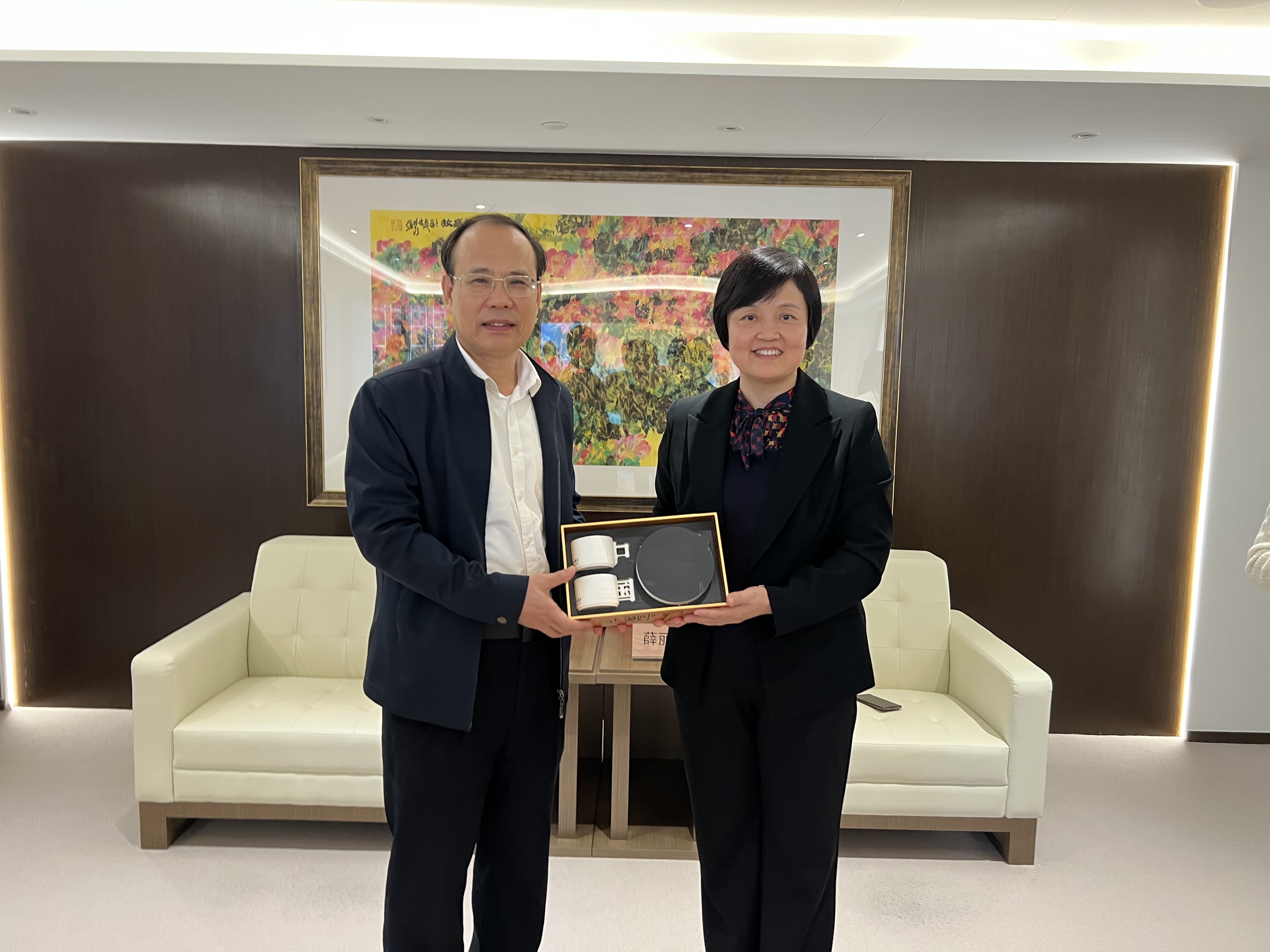 在紫荆文化集团,邱学青一行与紫荆文化集团副总经理薛丽军、紫荆杂志社副社长袁建等座谈交流。双方就《青春印丰碑》赴港演出以及促进香港青少年融入国家发展等议题进行交流。邱学青希望以《青春印丰碑》赴港演出为契机,进一步加强同香港的文化沟通与合作,共同讲好粤港澳大湾区故事,激励港澳青年投身中国式现代化建设贡献力量。会后,邱学青一行参观了紫荆杂志社和西九龙高铁站文化展演空间。