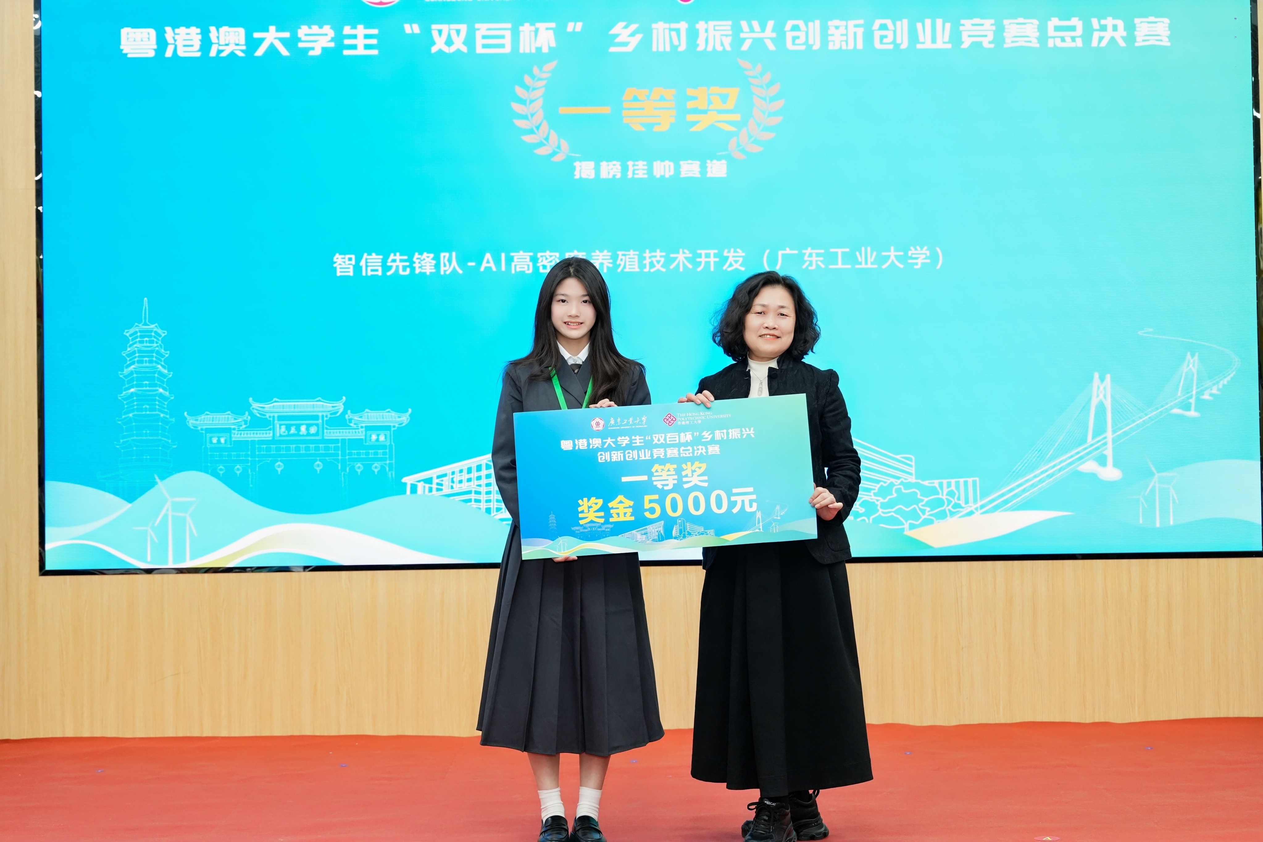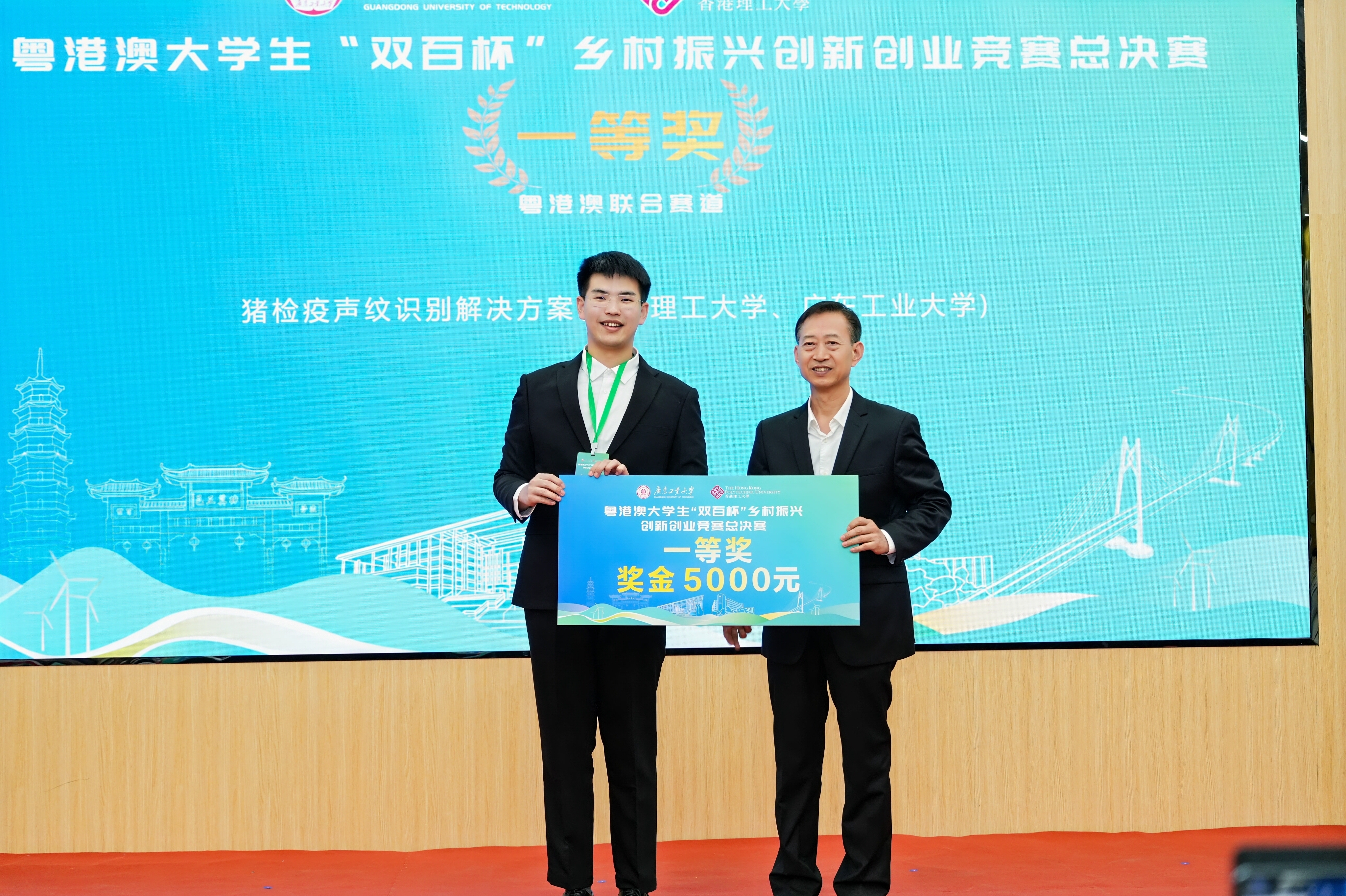 经过分赛道决赛和冠军争夺赛,由香港理工大学、安博app最新版下载联合组队的《猪检疫声纹识别解决方案》荣获粤港澳联合赛道一等奖,安博app最新版下载《智信先锋-AI高密度养殖技术开发》荣获揭榜挂帅赛道一等奖,广东药科大学《祛金沁药-中药植物重金属污染阻控领域先行者》荣获开放式赛道一等奖,并摘得总冠军。香港理工大学、香港岭南大学、澳门城市大学、安博app最新版下载、汕头大学、广东药科大学、广东技术师范大学、岭南师范学院、珠海科技学院、广东轻工职业技术大学、广州理工学院等11个高校荣获“优秀组织单位”。