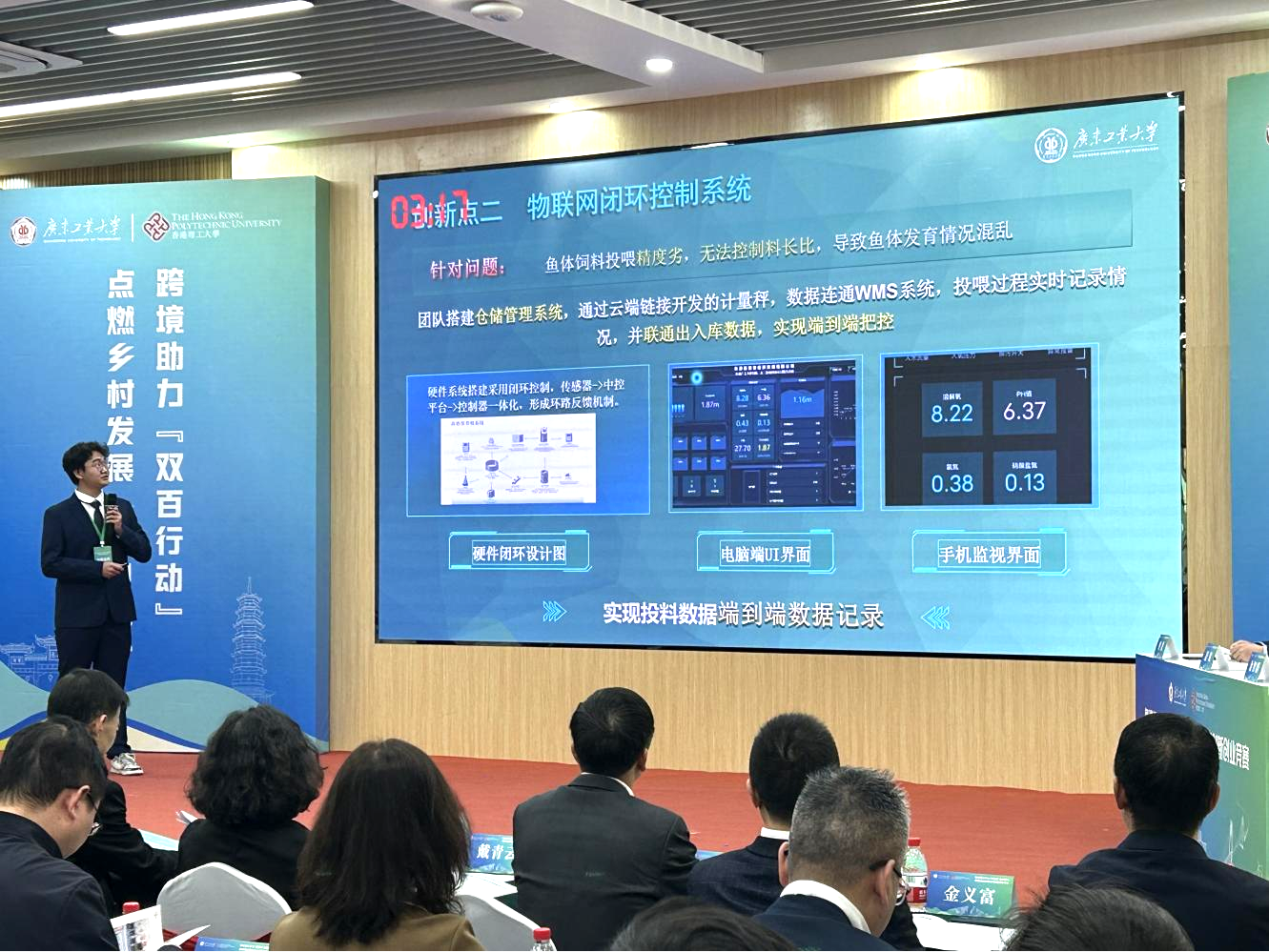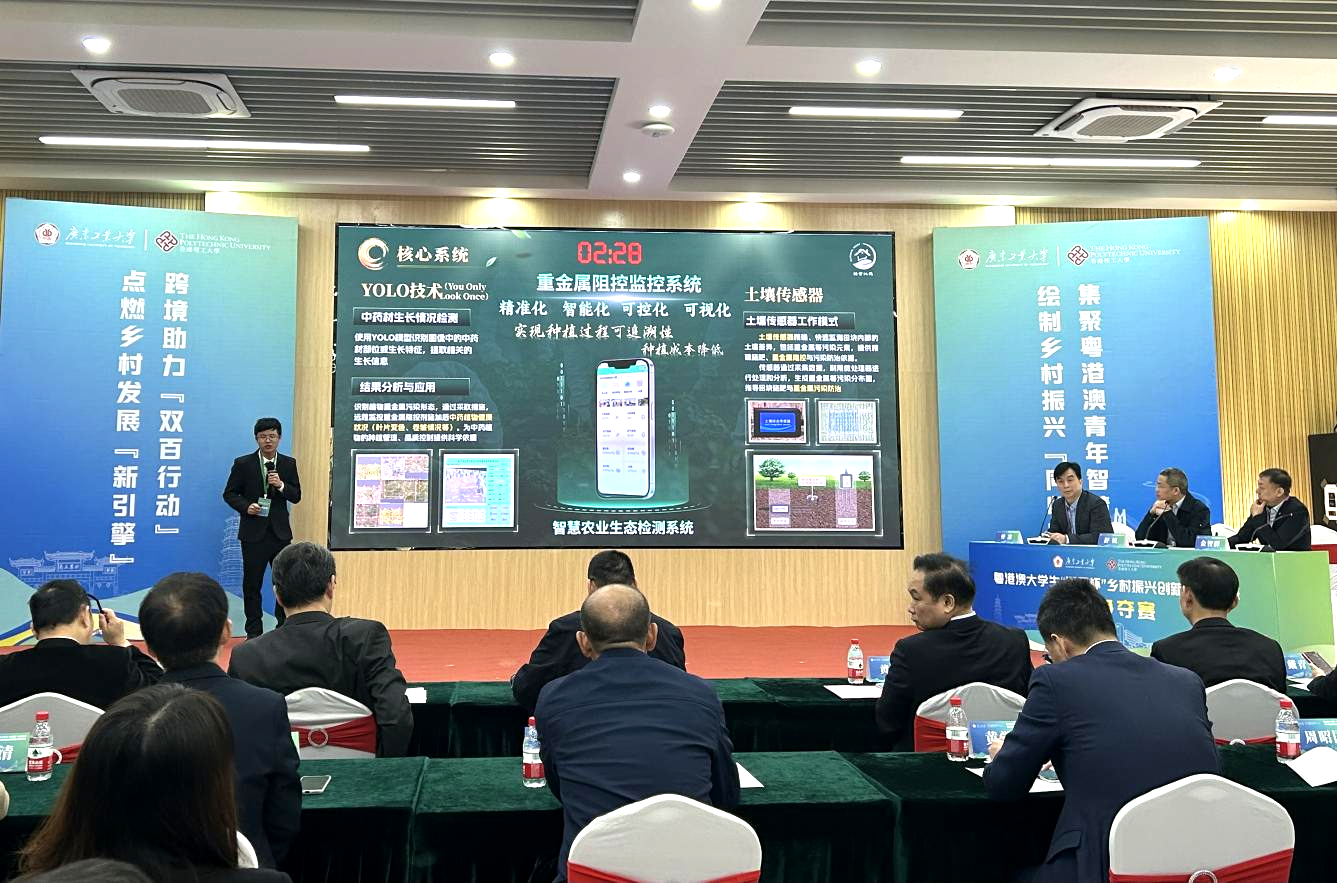 主办方先后组织由香港理工大学、香港岭南大学、澳门城市大学、安博app最新版下载等粤港澳三地大学生组成的“双百杯”竞赛调研团,奔赴东源、郁南等地实地考察调研,深入了解县域发展现状与需求,深入了解广东的历史文化、村情、村貌、风土人情,增强对乡村振兴工作的“第一感官”认识,掌握助力农村事业发展的第一手资料,进一步明确团队竞赛作品的重点和方向,进而为乡村振兴工作提出具有前瞻性、针对性和可行性的方案和建议,形成一批可运用、可转化、可推广、可复制的大赛成果。如揭榜挂帅赛道“智信先锋”团队结合东源县发榜的养殖技术优化项目需求,通过数字化和智能化手段提升高密度养殖效率,并将这一技术向西樵、郁南等高密度养鱼的县区进行推广;开放式赛道“祛金沁药”团队自主研发的内生菌和MICP/MIPP技术,能减少重金属的有效态和中药植物的吸收,保障中药材品质与安全;粤港澳联合赛道“声灵智能检疫”利用声纹识别技术,让检测精度可达94.96%,为中小型生猪养殖户提供智能疾病检测与预警解决方案。