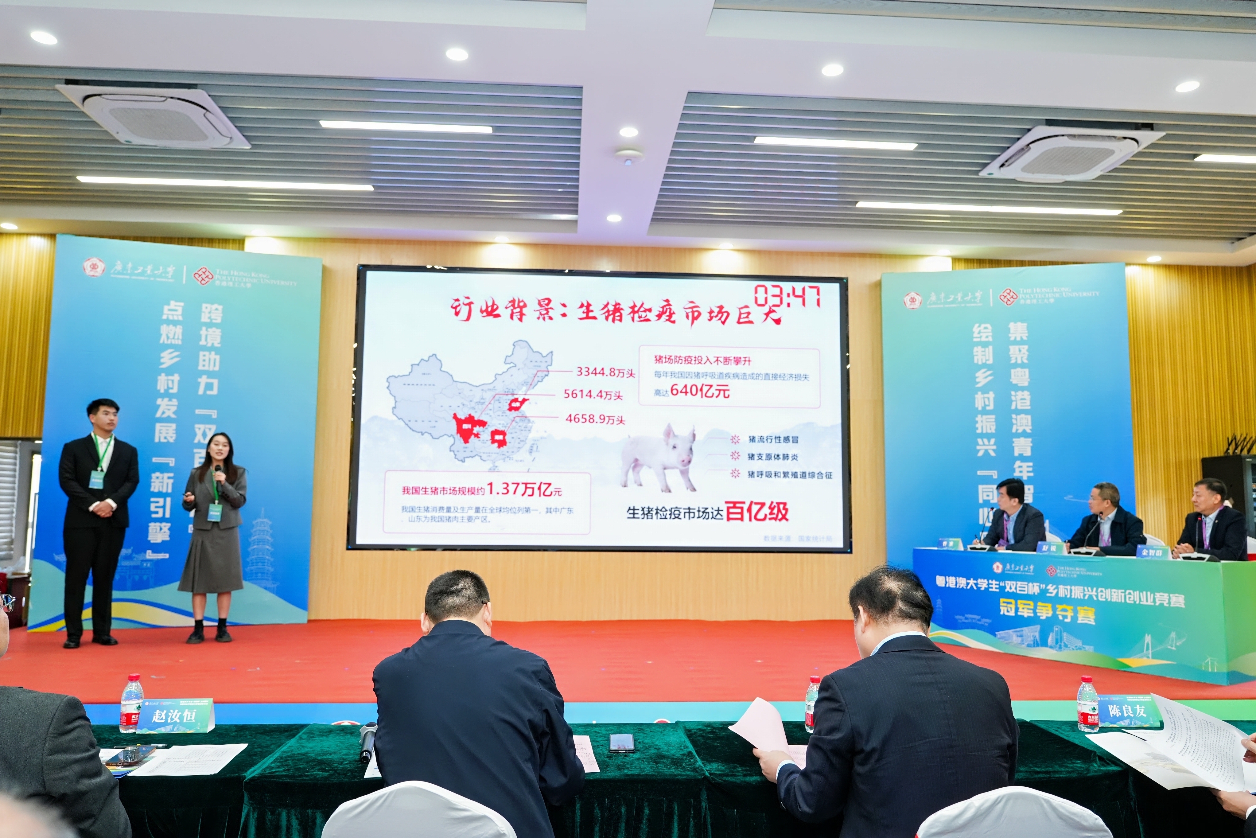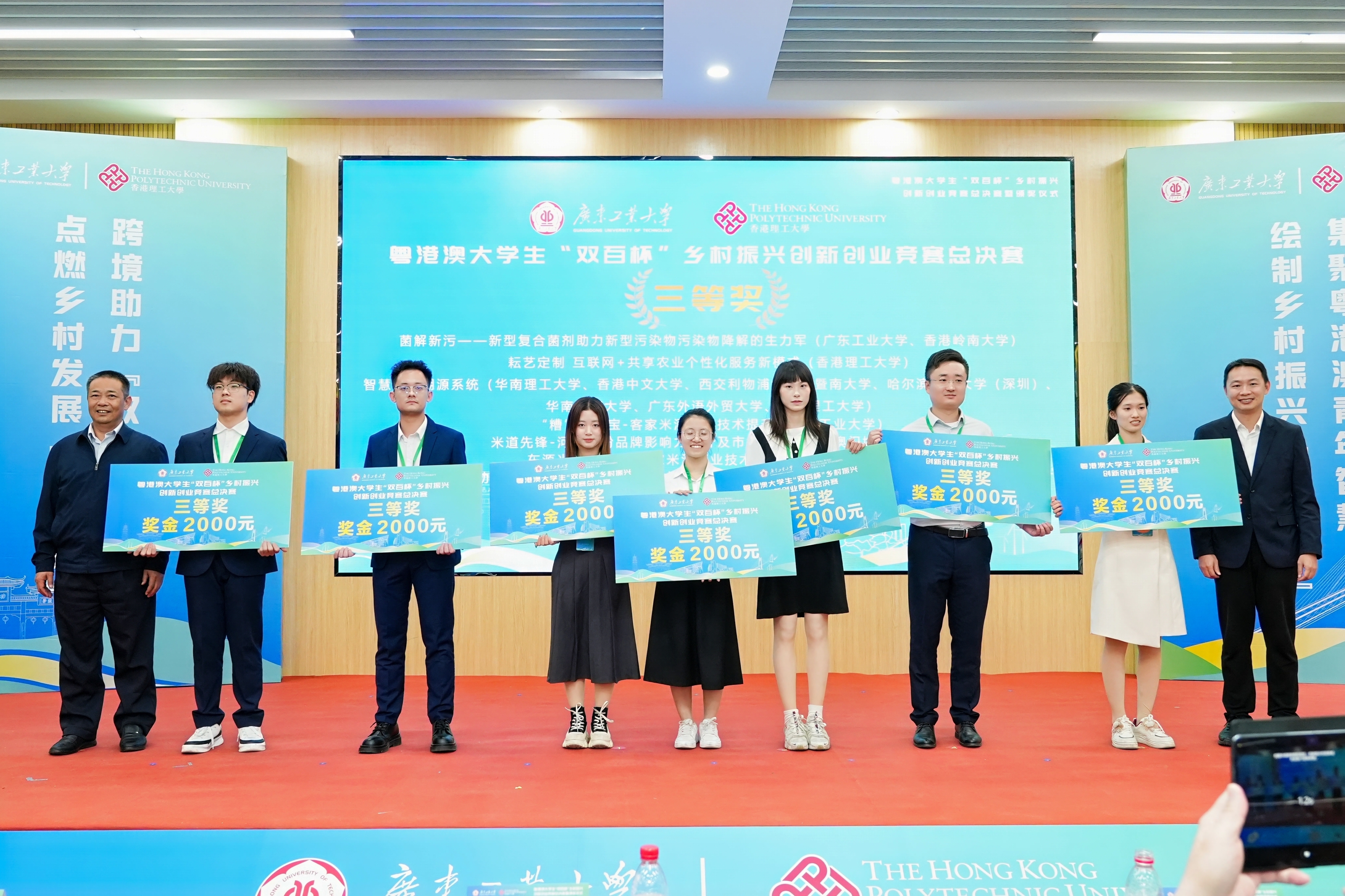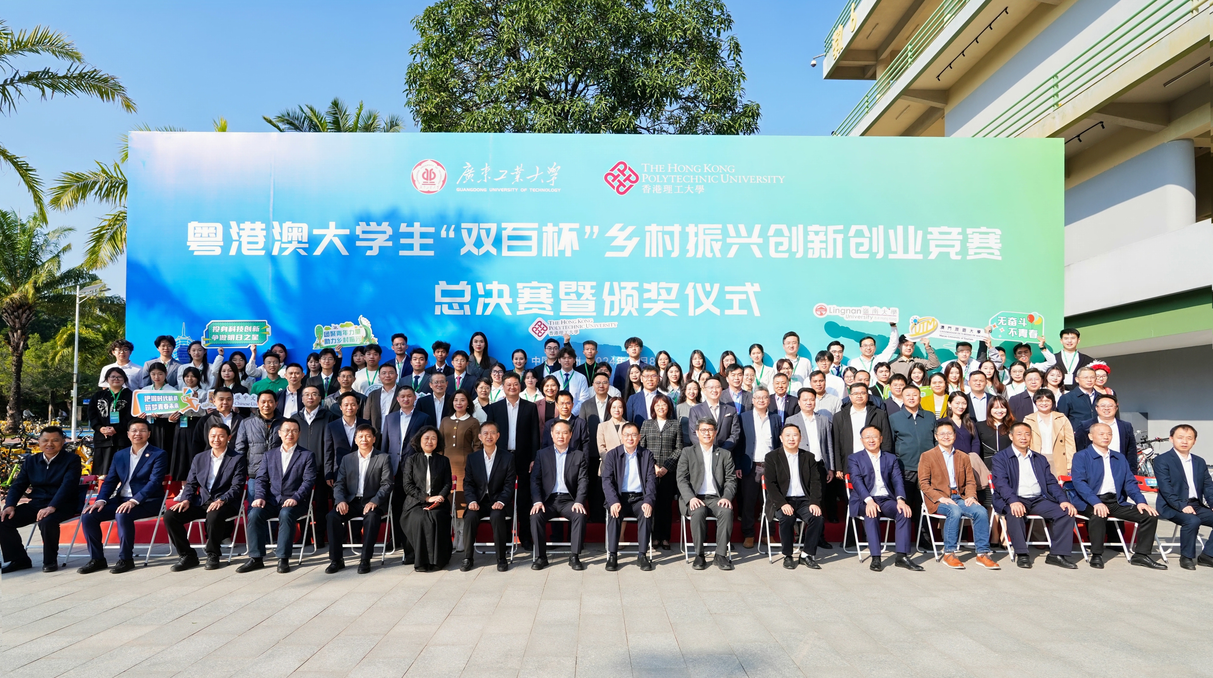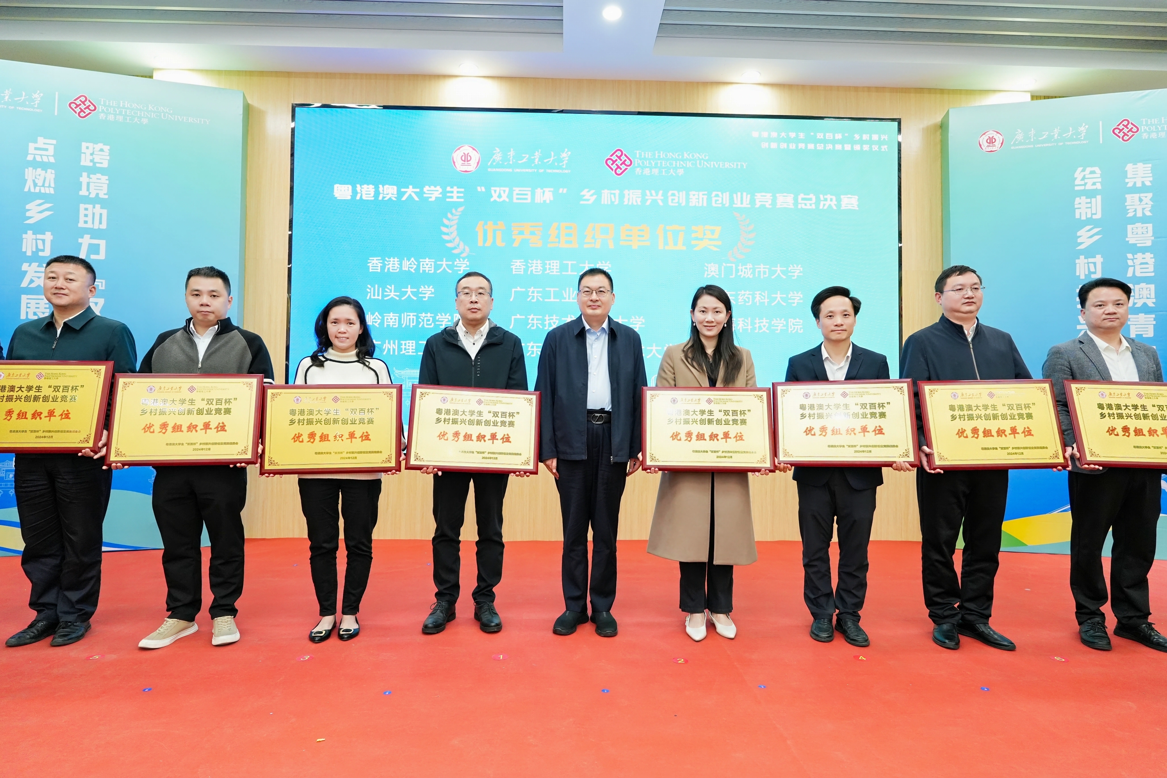 12月8日,由省教育厅指导、安博app最新版下载和香港理工大学首次跨境联合主办的粤港澳大学生“双百杯”乡村振兴创新创业竞赛总决赛暨颁奖仪式,在广工大学城校区国家级创新创业教育实践基地-工大创谷举行。来自粤港澳三地33所高校49支团队从108所高校623支初赛队伍脱颖而出,近200名学生汇聚广工大学城校区参加总决赛,用科研成果、调研报告、规划方案为乡村振兴事业建言献策、贡献智慧。