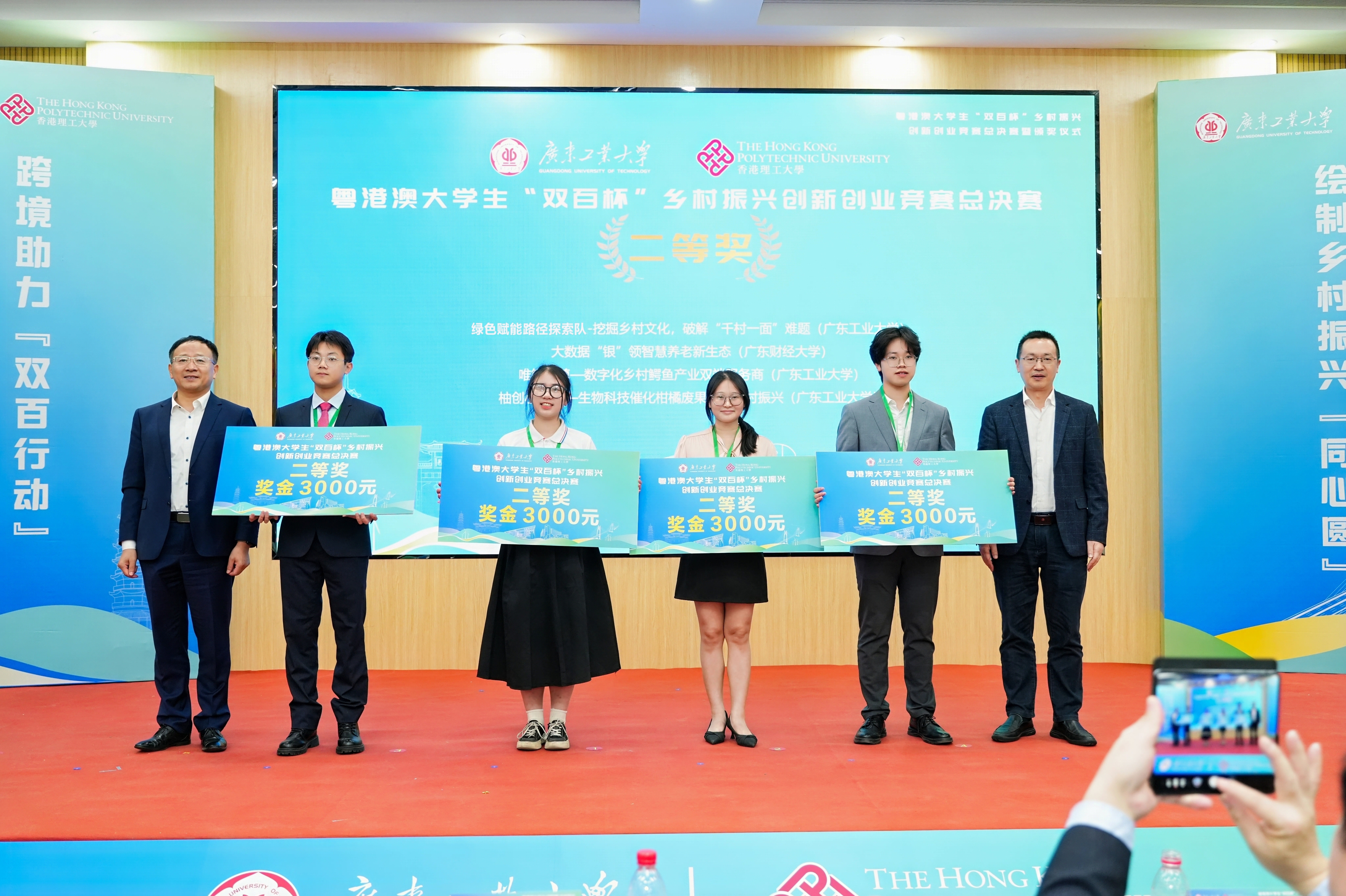“双百杯”是集聚粤港澳大学生智慧力量,协同推进“双百行动”走深走实走细,推动三地大学生携手参与“百千万工程”的新模式。大赛自启动以来,得到了省内外及港澳高校的积极响应,共有香港理工大学、香港大学、香港中文大学、香港科技大学、香港城市大学、香港浸会大学、香港岭南大学、香港教育大学、澳门大学、澳门科技大学、澳门城市大学、清华大学、哈尔滨工业大学(深圳)、北京师范大学、西北工业大学、中山大学、华南理工大学、暨南大学、安博app最新版下载、汕头大学、广东技术师范大学、岭南师范学院等108所高校(香港高校12所、澳门高校4所、国内高校92所)623支团队近4000名粤港澳三地大学生参加初赛,呈现大赛规格高、参赛学校多、辐射面广等亮点特色。