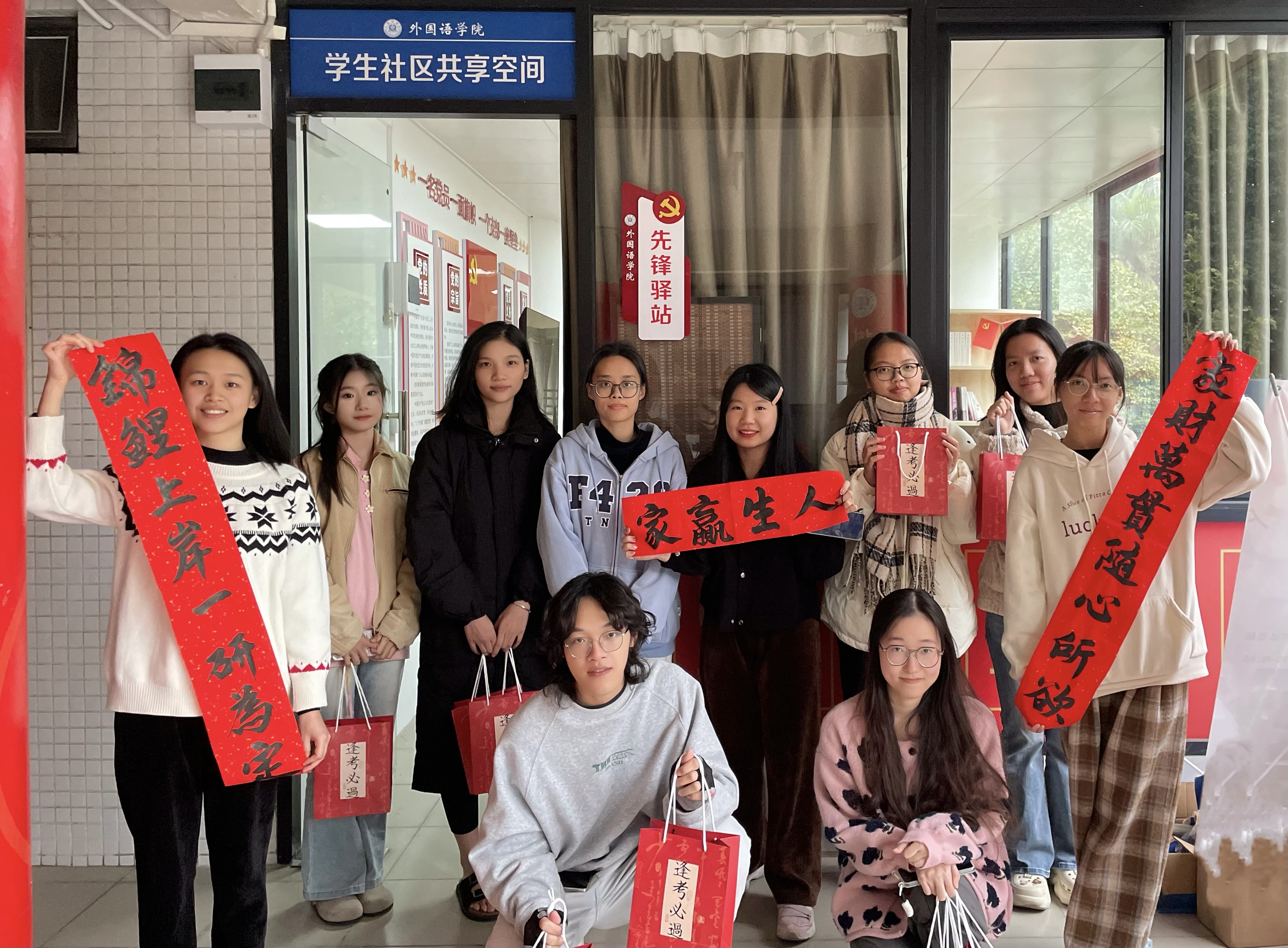 外国语学院在生活西区先锋驿站组织“‘研’途相伴,‘公’祝上岸”2025届毕业生考研考公慰问活动。毕业班辅导员将内含了寓意“诸事皆宜”“好事发生”的钥匙扣和挂件、暖宝宝、考试文具、“逢考必过”袜子等小礼物的考试加油礼包送给同学们,鼓励他们调整心态、平衡压力,帮助他们在考试的最后冲刺阶段保持积极心态,缓解备考过程中的焦虑与紧张情绪。