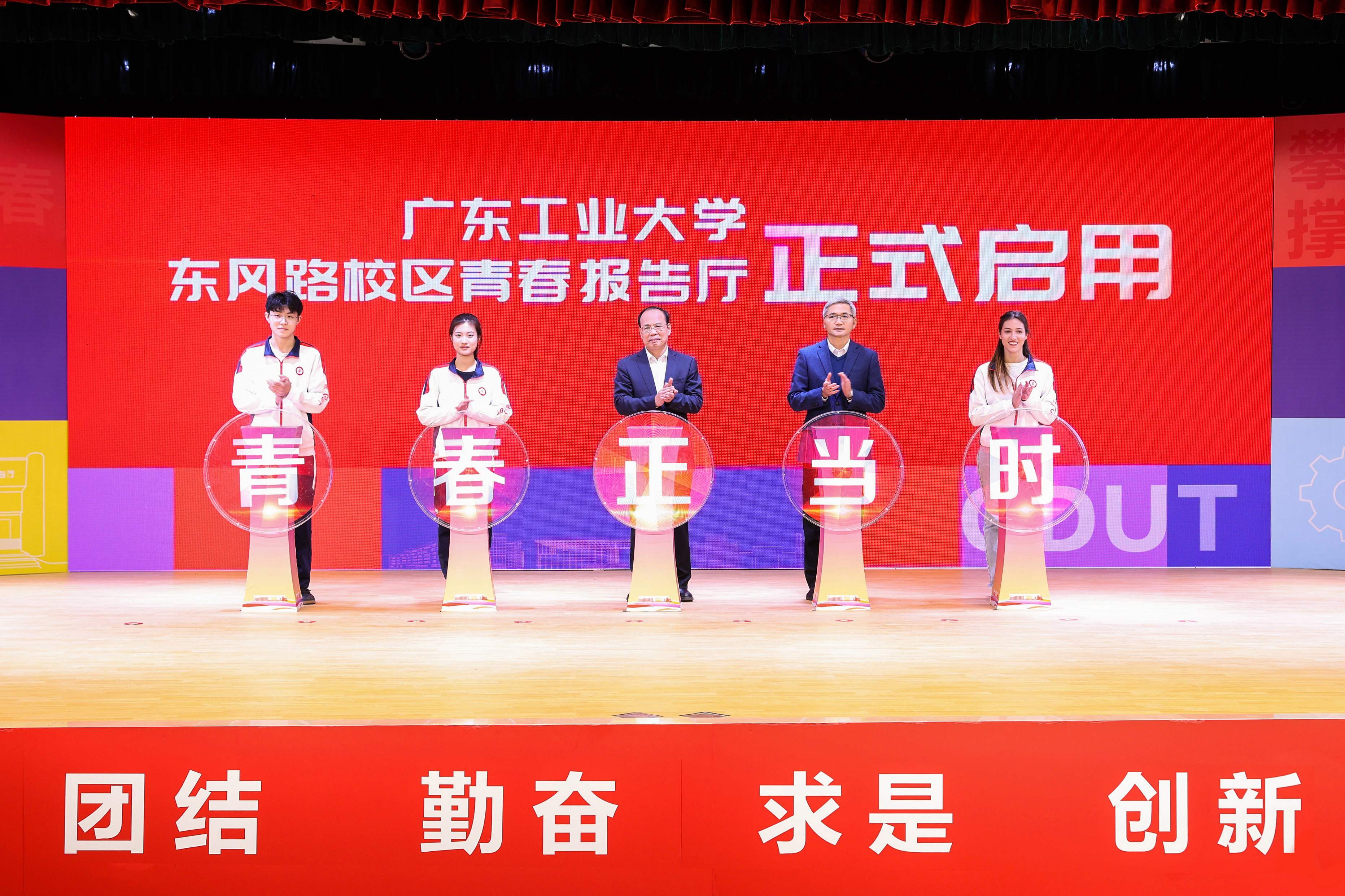 学校领导和学生代表共同为东风路校区青春报告厅按下启动键