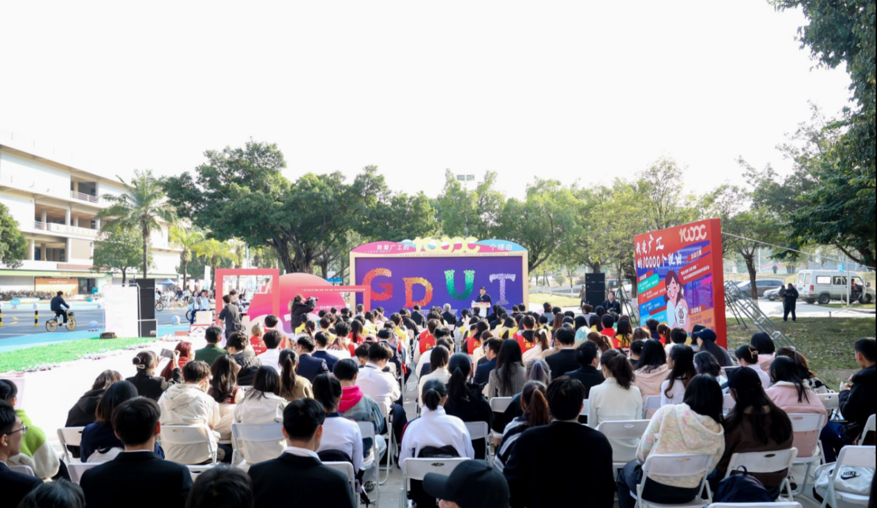 活动上,首次发布由2023级设计学硕士研究生金煜利用AI创作的活动主题曲《我爱广工的10000个理由》,由艺术与设计学院声歌队现场演绎。歌曲轻快悦耳,引起全场共鸣,备受好评。现场还设有五个特色环节:知校·情深叙怀:“我和广工的故事”视频共创;绘校·聚力添彩:“我为GDUT添新彩”彩绘共创;爱校·心心相印:“I ❤ GDUT”文创共创;荣校·光影芳华:“我与广工合个影”照片共创;兴校·攀撑永续:校训主题系列文创产品兑换。热情的广工师生纷纷以校训为引,畅谈“我与广工的故事”,讲述“我爱广工的理由”。活动主背景由现场观众、路过学生和志愿者共创完成,现场还有文创共创环保袋、明信片、卡包、钥匙链等校训主题创意文创派发,各摊位前人潮涌动,同学们纷纷用双手创作出独属于广工记忆的青春文创。