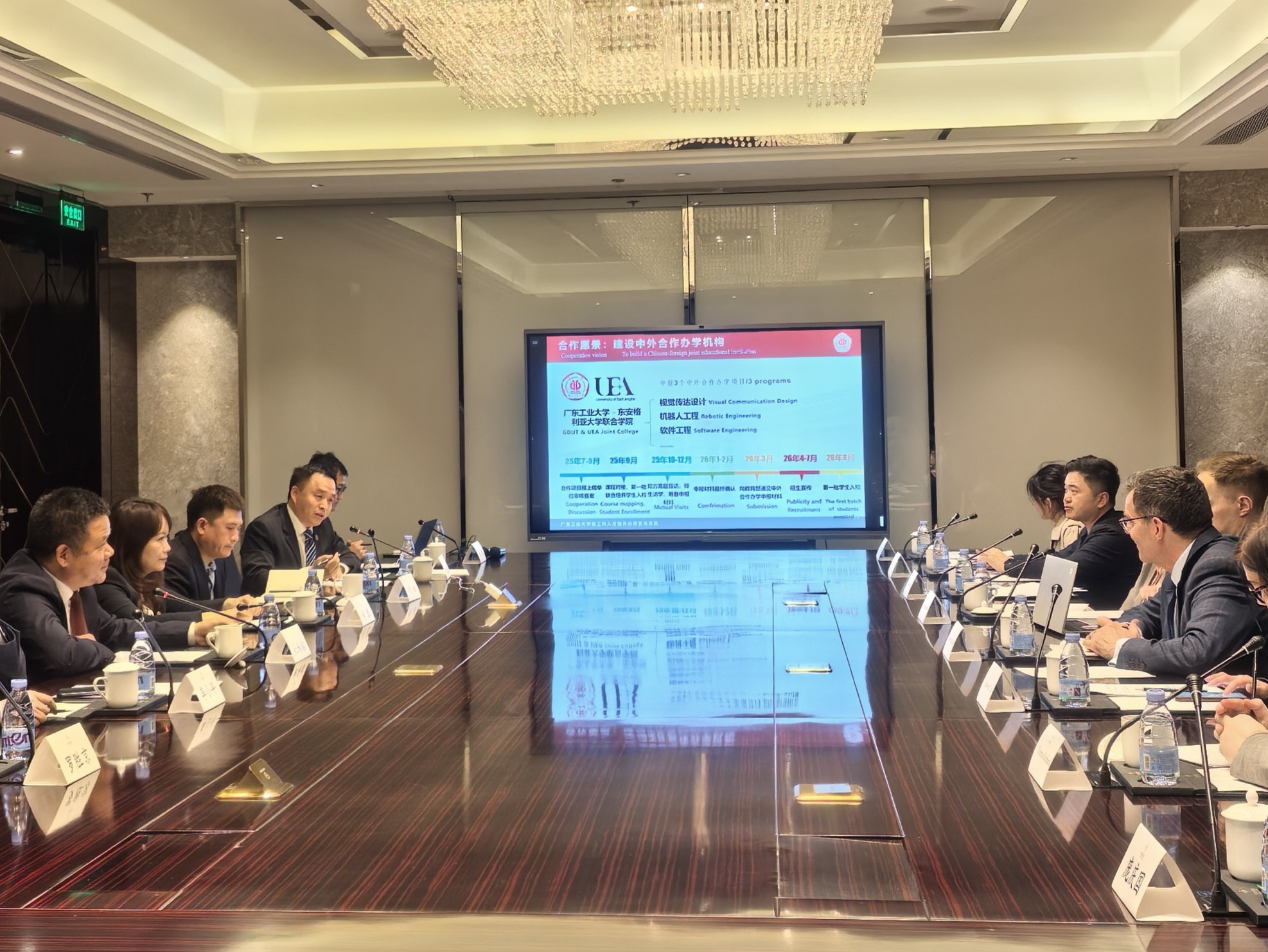 4月12日,广工党委常委、副校长杜承铭率团赴京,与英国东安格利亚大学(UEA)代表洽谈国际教育合作。国际合作与交流处、计算机学院、艺术与设计学院相关负责人一同参会。