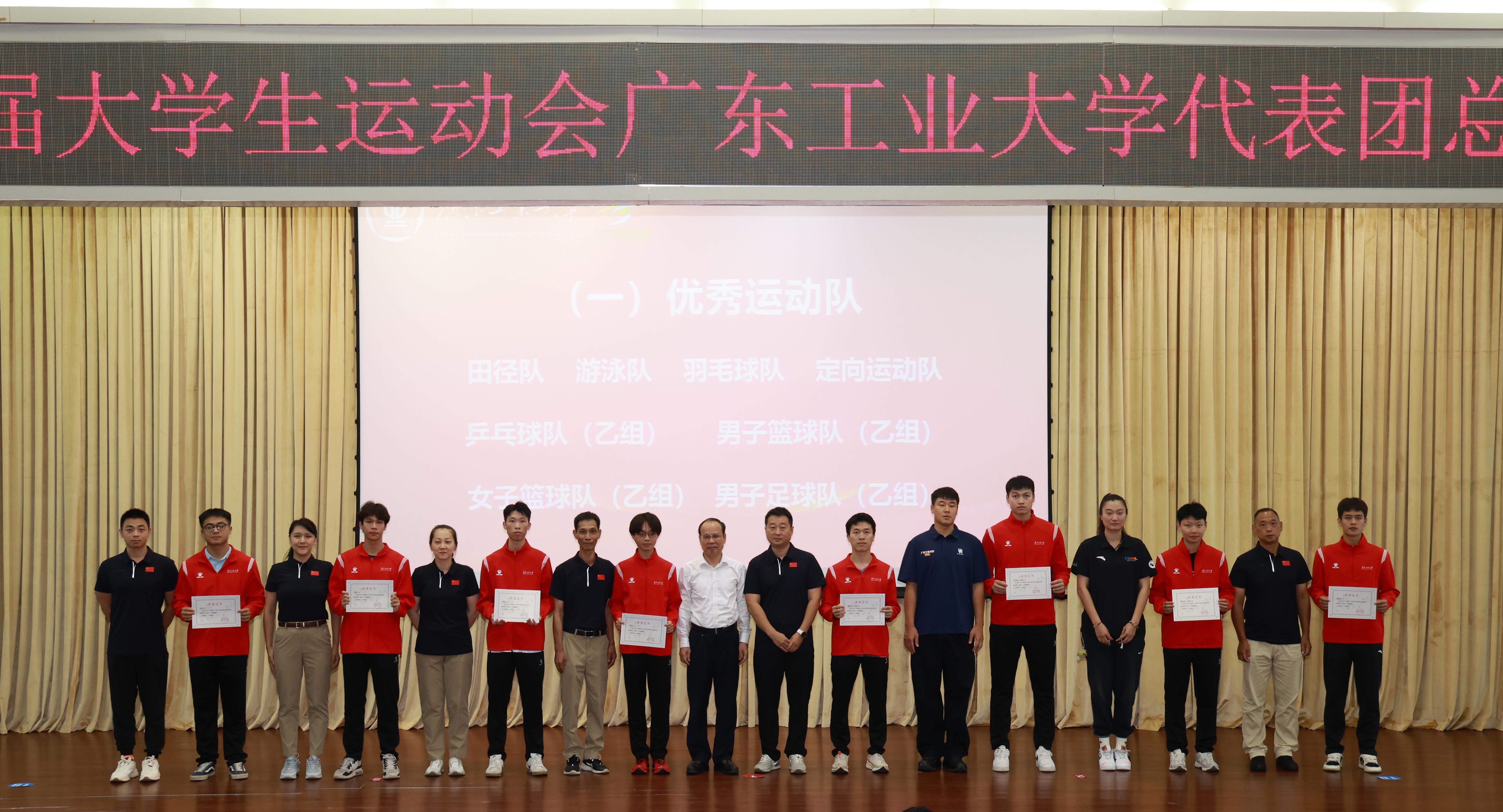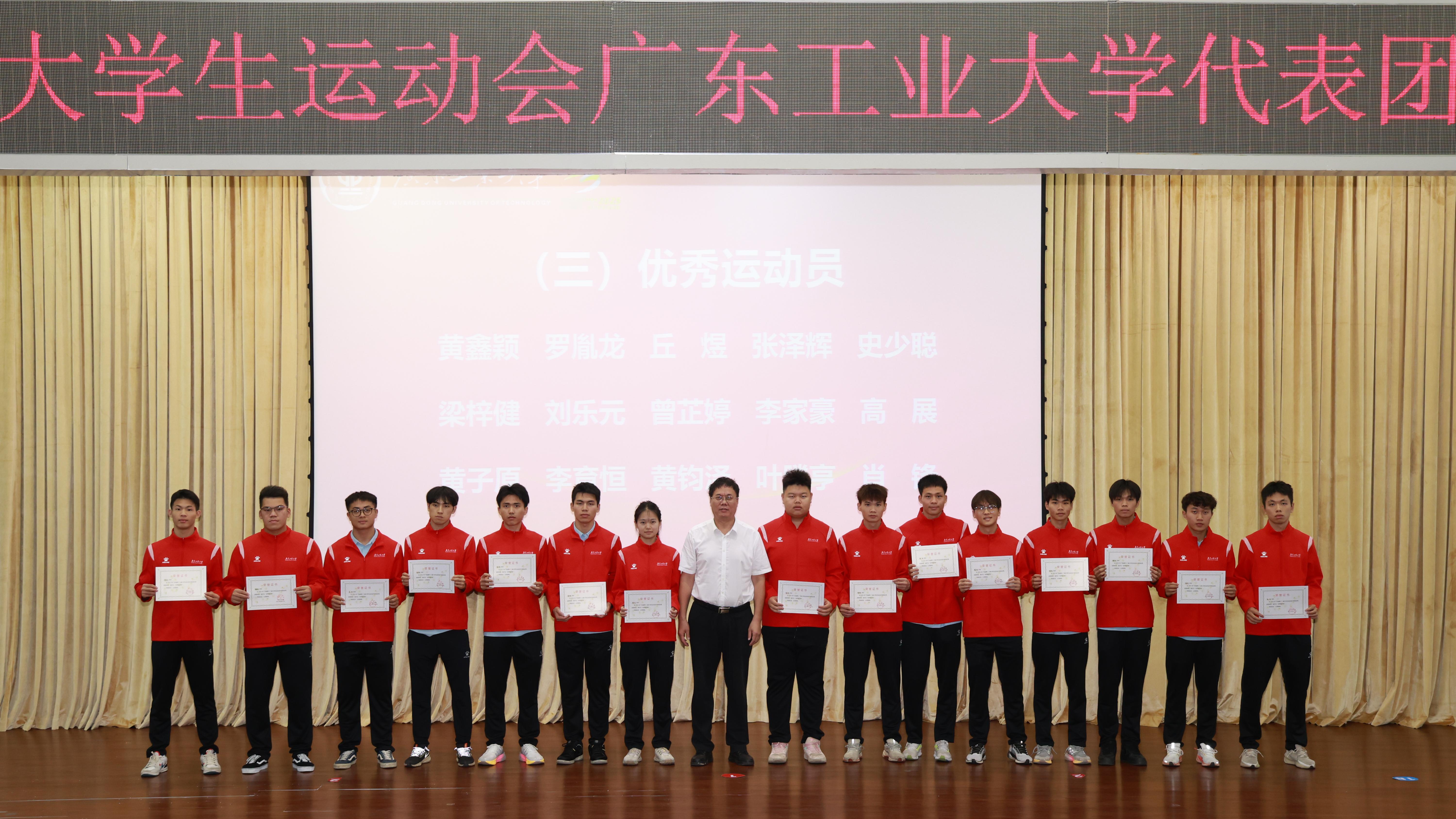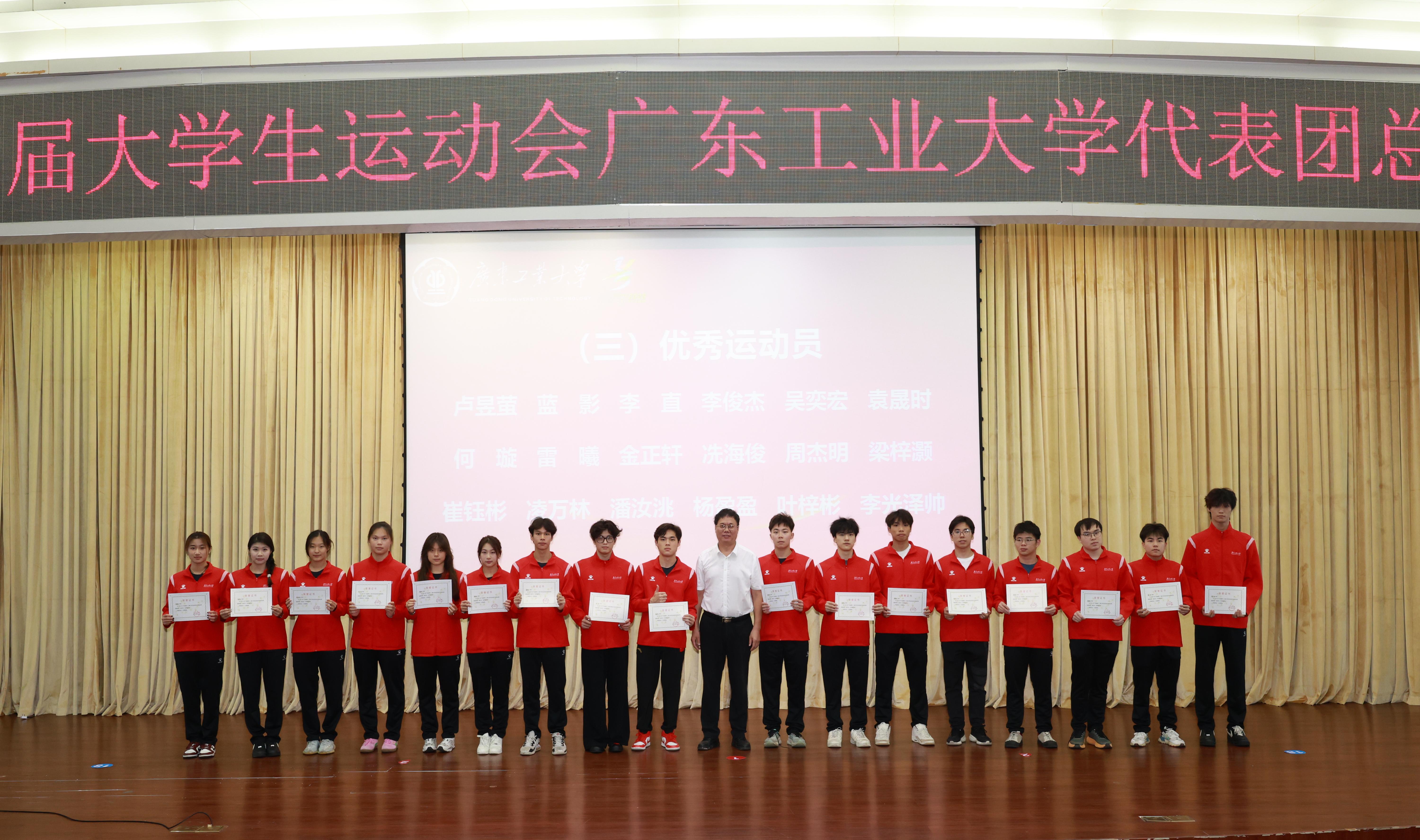邱学青在会上指出,本次成绩是学校坚持“五育并举”、深化体育改革的丰硕成果,更是运动员顽强拼搏与教练、后勤团队无私奉献的集中体现。他强调,赛场上展现的“胜不骄、败不馁”从容气度与“追求卓越、永不言弃”的广工精神,是比奖牌更珍贵的财富。他号召全校师生将这种拼搏精神融入教学科研和管理服务中,助力学校高水平创新型大学建设。他提出三点希望,一是坚持以生为本,牢固树立健康第一的教育理念。持续优化校园体育环境,推动竞技体育与群众体育融合,让“人人参加体育,人人喜欢体育,终生离不开体育”理念深入人心;二是强化学科建设,助推体育事业高质量发展。依托新获批的运动训练专业及硕士学位点,推动体教融合、体科互促,培育复合型体育人才,构建更加科学、客观的竞技评价体系,为学校体育事业注入源源不断的创新活力和发展后劲;三是厚植体育文化,将拼搏基因注入学校发展血脉。将“不畏强手、团结协作、超越自我”的赛场拼搏精神升华为广工文化的核心特质,为奋力推进“1+2+3”攀撑计划、加快建设高水平创新型大学注入强劲动能,推动学校各项事业再攀高峰。