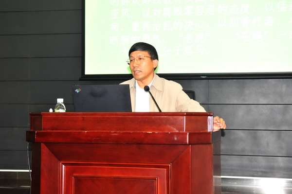 会上,赵康作了《认真贯彻十八大反腐倡廉精神,切实加强高校党风廉政建设》的专题报告。报告从十八大以来党风廉政建设新进展、理性认识当前反腐败斗争形势和切实加强高校党风廉政建设等三个方面进行阐述。他结合自己多年的纪检监察工作经历,通过近年来发生在全国和我省教育系统的典型案件,深刻分析了当前教育系统反腐败斗争的严峻形势,阐述了我国特别是我省教育系统反腐倡廉工作取得的成效,剖析了反腐败斗争具有长期性、艰巨性和复杂性的特点,并指出了新形势下加强教育系统反腐倡廉建设、党员干部拒腐防变能力的有效途径。