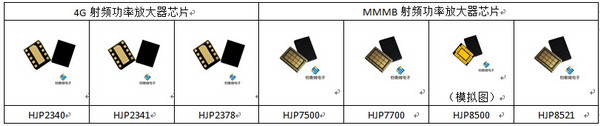 钧衡微电子公司推出的功放系列芯片包括4G射频功率放大器芯片和MMMB射频功率放大器芯片。该系列芯片性能兼容国际知名射频芯片供应商SKYWORKS、RFMD和AVAGO等的同类产品,4G功放在峰值输出功率上具有效率高,线性度好等优点。MMMB功放可支持多达2G/2.5G/3G/4G等5模13频,应用领域包括智能手机、平板电脑、数据卡和智能穿戴等智能终端。
