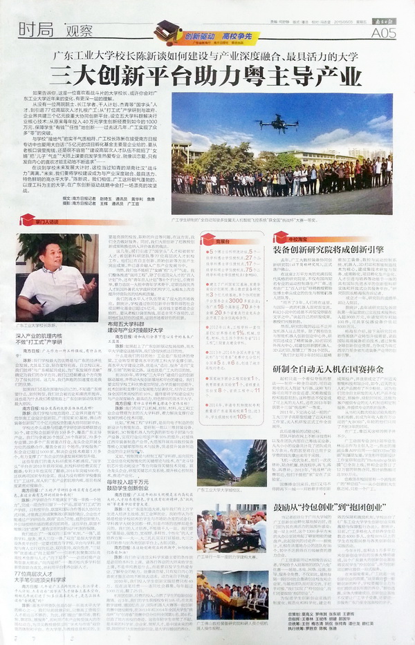 南方日报:广工近年的招生规模是省内高校最大的,人才培养有特色,学生很有创新精神,在“挑战杯”等竞赛中经常拿大奖。