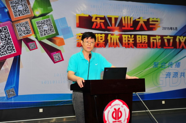 广州日报政文部新闻中心副主任刘旦作为联盟顾问代表作了发言,对学校成立新媒体联盟表示祝贺。他说,在互联网+的时代,广工大在全省高校中率先成立新媒体联盟,是对宣传思想工作的有益探索和实践,很有意义,希望把这一平台建设好,汇聚正能量,助力学校高水平大学建设与发展。