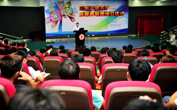 本网讯 5月20日,我校新媒体联盟在大学城校园成立,这是广东高校首家新媒体联盟成立单位。校党委书记苏一凡、副书记汤耀平、副校长章云出席成立仪式。苏一凡为新媒体联盟成立揭幕,汤耀平宣读联盟机构单位和首批顾问名单,章云为联盟顾问颁发了聘书,校领导共同为联盟理事长单位、常务理事单位授牌。中央、省市媒体共15家采访报道了联盟成立。