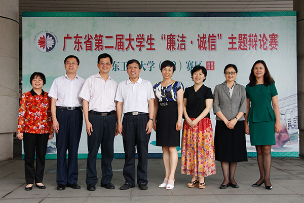 5月16日下午,广东省第二届大学生“廉洁·诚信”主题辩论赛A2赛区第三轮比赛的角逐在我校圆弧报告厅展开。省教育纪工委书记、监察专员赵康,省教育纪工委副书记、省监察厅派驻省教育厅监察专员办公室主任吴育莲,派驻省教育厅监察专员办公室副主任蒋华,校党委副书记、纪委书记汤耀平,校纪委办、宣传部、团委、学生处等相关部门负责人观看了比赛。